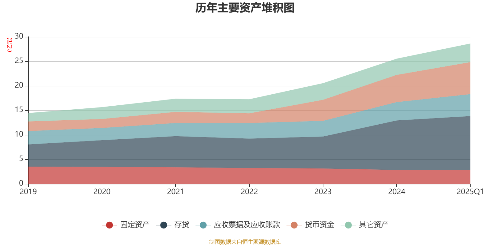 资产重大变化方面,截至2025年一季度末,公司固定资产较上年末减少0.37%,占公司总资产比重下降1.23个百分点;存货较上年末增加9.01%,占公司总资产比重下降1.1个百分点;货币资金较上年末增加17.4%,占公司总资产比重上升1.02个百分点;在建工程合计较上年末增加117.57%,占公司总资产比重上升1.01个百分点。