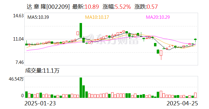 中证智能财讯达意隆(维权)(002209)4月25日披露2025年第一季度报告。公司实现营业总收入3.97亿元,同比增长74.16%;归母净利润2949.47万元,同比增长245.76%;扣非净利润2932.44万元,同比增长935.52%;经营活动产生的现金流量净额为7898.99万元,同比下降8.36%;报告期内,达意隆基本每股收益为0.1473元,加权平均净资产收益率为4.02%。