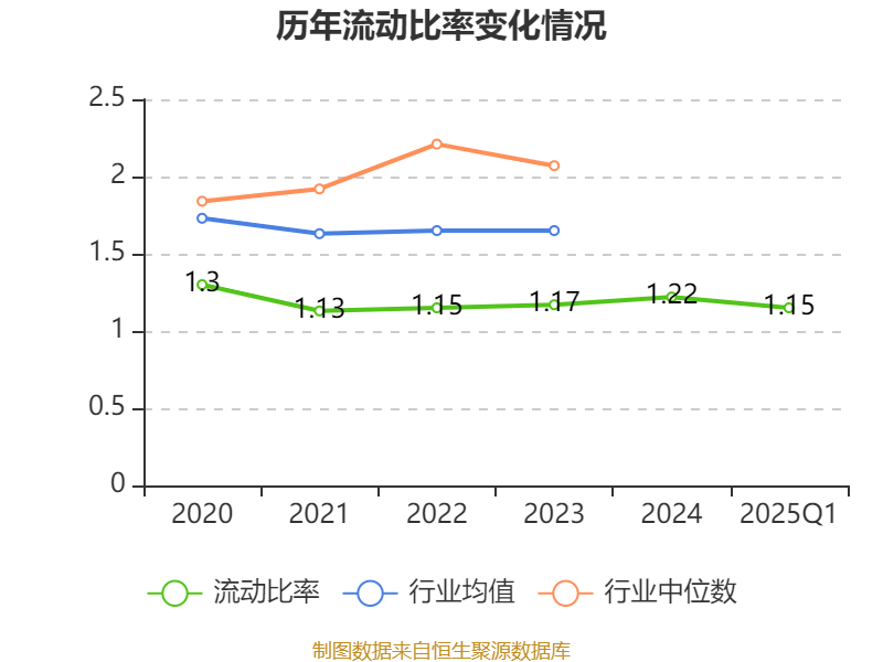 2025年第一季度,公司流动比率为1.15,速动比率为0.61。