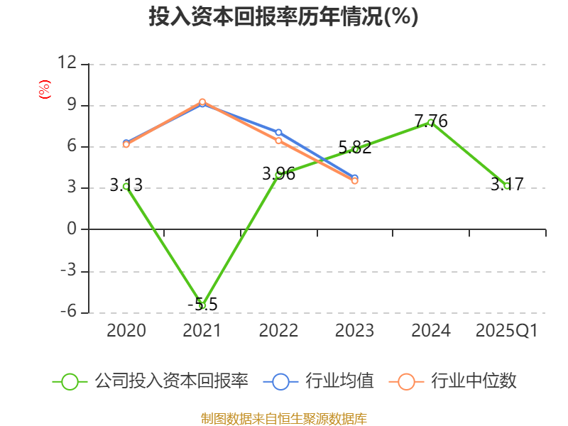 盈利能力方面, 2025年一季度公司加权平均净资产收益率为4.02%,同比上升2.7个百分点。公司2025年第一季度投入资本回报率为3.17%,较上年同期上升2.16个百分点。