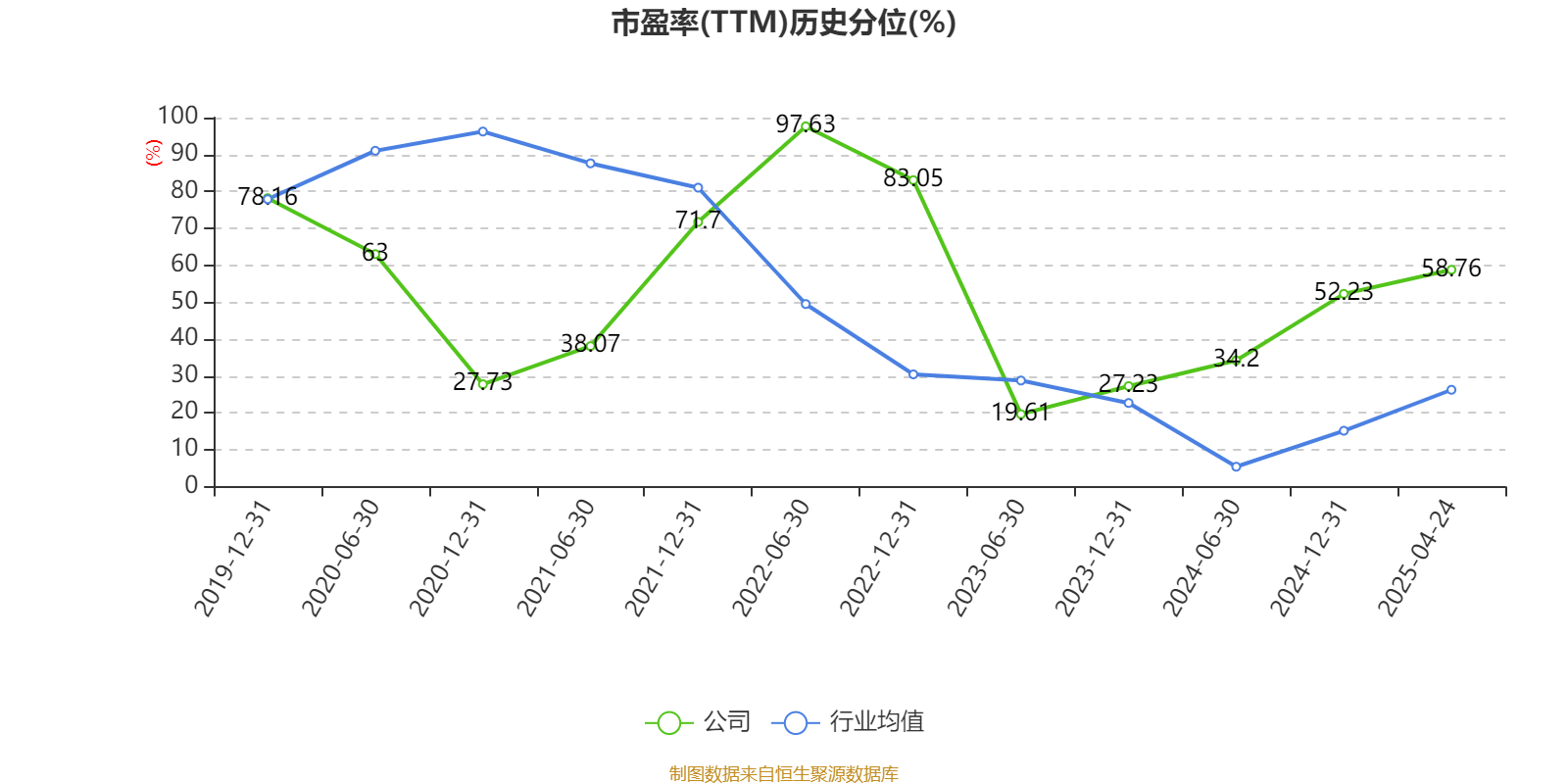 市盈率、市净率为负时,不显示当期分位数,会导致折线图中断。