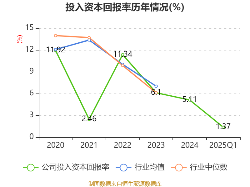 盈利能力方面, 2025年一季度公司加权平均净资产收益率为1.49%,同比上升0.33个百分点。公司2025年第一季度投入资本回报率为1.37%,较上年同期上升0.21个百分点。