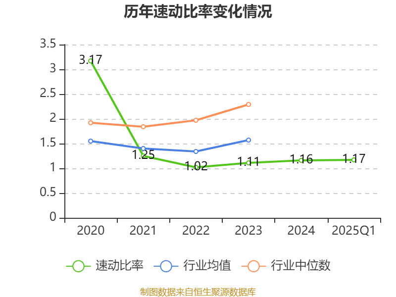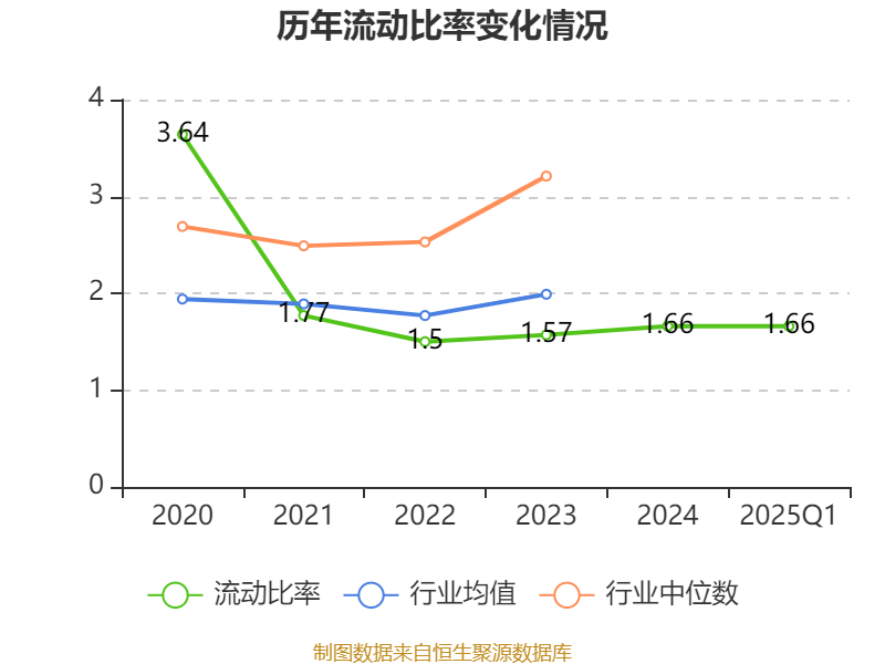2025年第一季度,公司流动比率为1.66,速动比率为1.17。