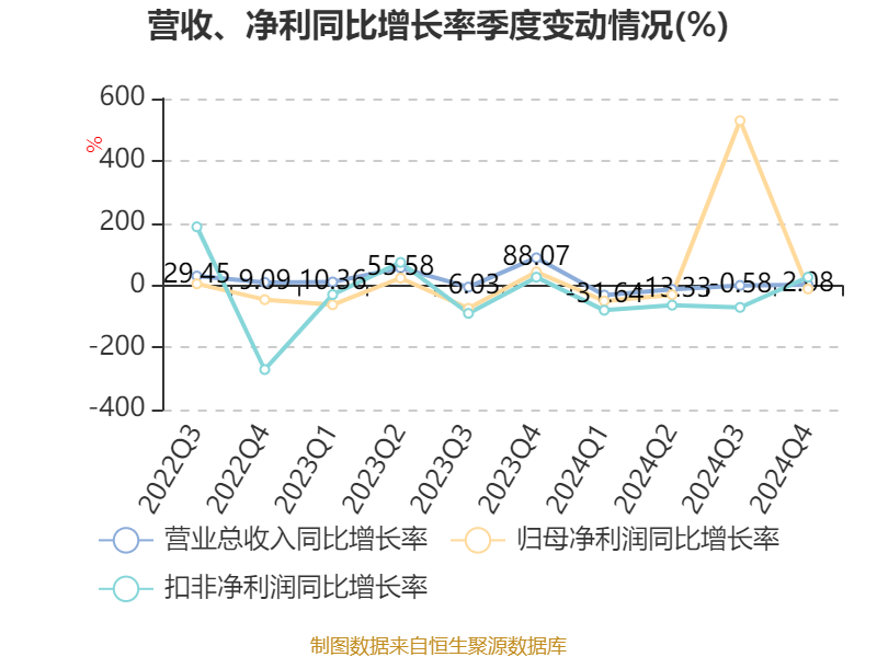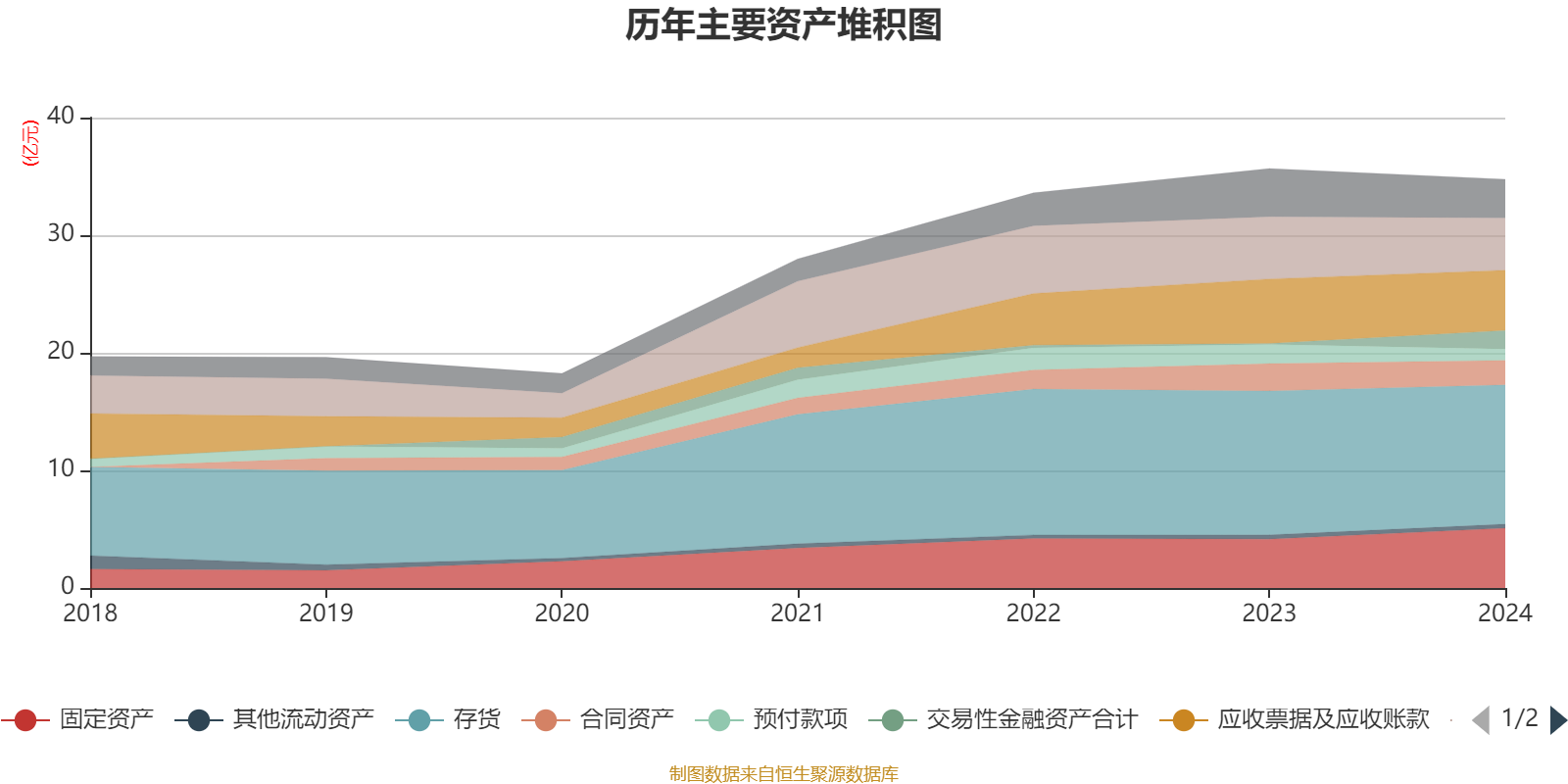 资产重大变化方面,截至2024年末,公司交易性金融资产合计较上年末增加2170.4%,占公司总资产比重上升4.38个百分点;固定资产较上年末增加22.44%,占公司总资产比重上升2.99个百分点;货币资金较上年末减少16.18%,占公司总资产比重下降2.06个百分点;预付款项较上年末减少41.42%,占公司总资产比重下降1.83个百分点。