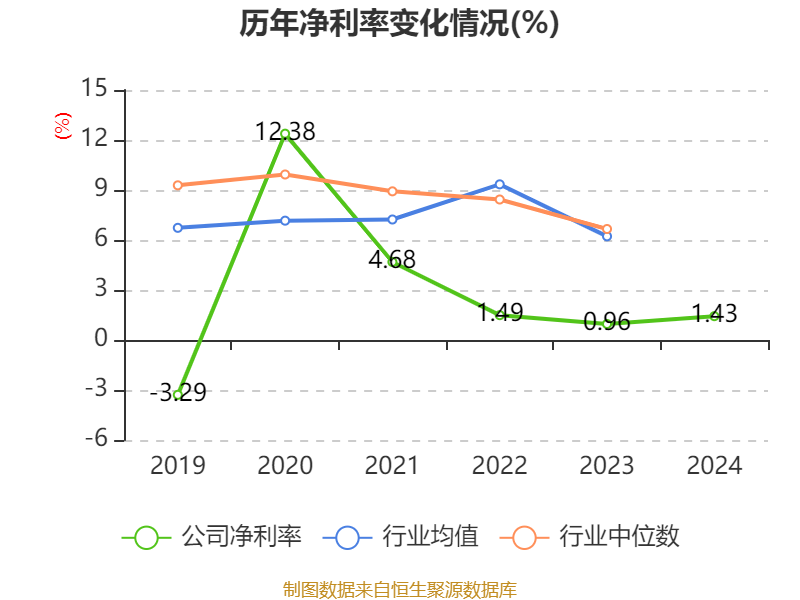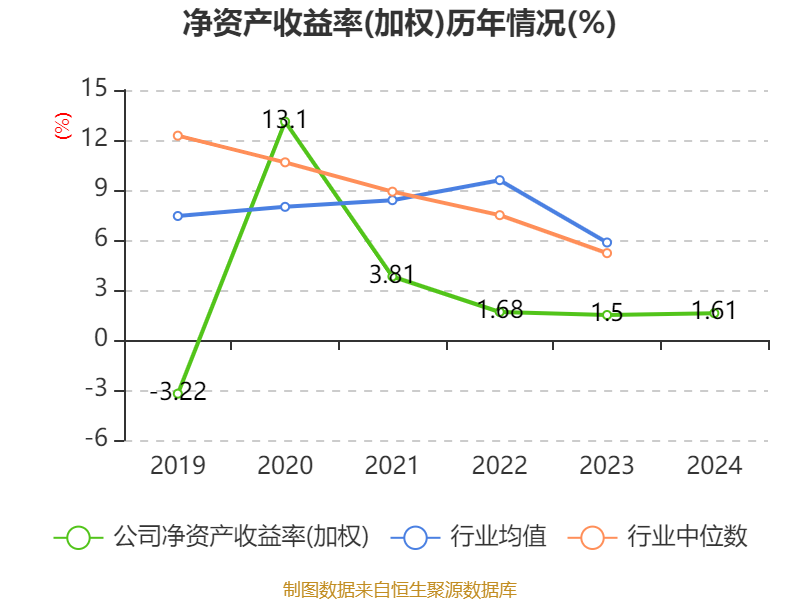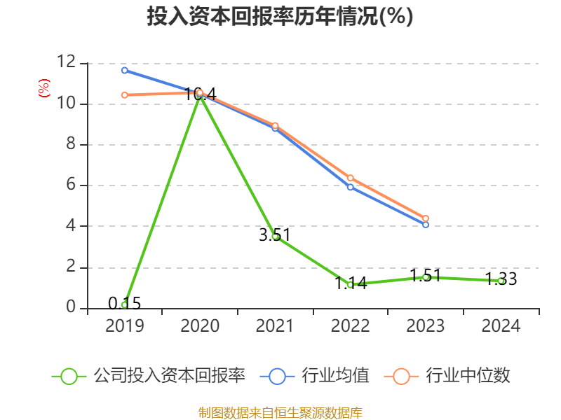 数据显示,2024年公司加权平均净资产收益率为1.61%,较上年同期上升0.11个百分点。公司2024年投入资本回报率为1.33%,较上年同期下降0.18个百分点。