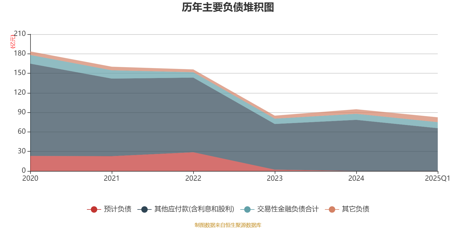 负债重大变化方面,截至2025年一季度末,公司其他应付款(含利息和股利)较上年末减少16.35%,占公司总资产比重下降4.08个百分点;租赁负债较上年末增加2006.12%,占公司总资产比重上升0.52个百分点;交易性金融负债合计较上年末增加0.49%,占公司总资产比重上升0.2个百分点;应付职工薪酬较上年末减少21.04%,占公司总资产比重下降0.14个百分点。