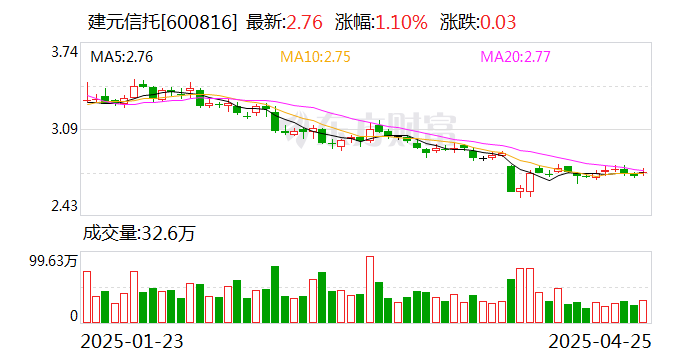 中证智能财讯建元信托(600816)4月25日披露2025年第一季度报告。公司实现营业总收入6795.44万元,同比增长55.74%;归母净利润2634.17万元,同比增长27.56%;扣非净利润4381.84万元,同比增长14.36%;经营活动产生的现金流量净额为-1788.46万元,上年同期为-2549.21万元;报告期内,建元信托基本每股收益为0.0027元,加权平均净资产收益率为0.19%。