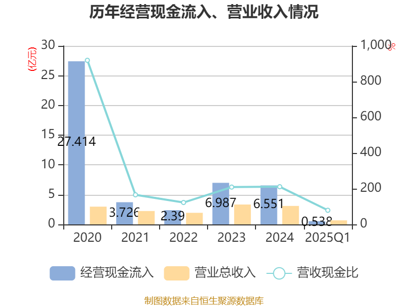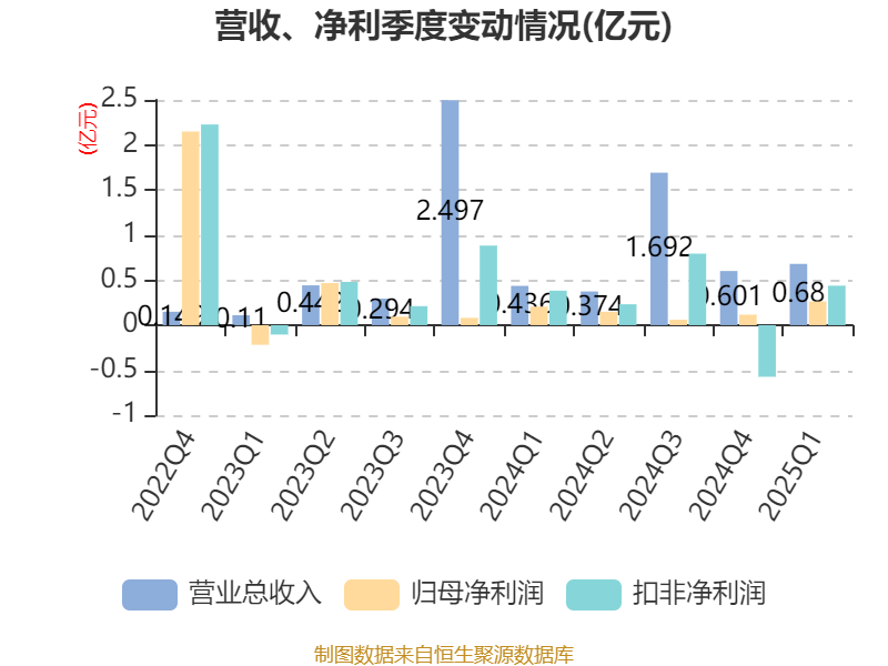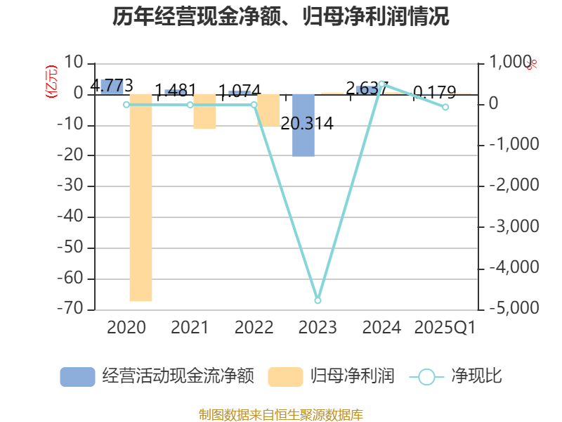 截至2025年一季度末,公司经营活动现金流净额为-1788.46万元,同比增加760.75万元;筹资活动现金流净额-13.66亿元,同比减少13.64亿元;投资活动现金流净额11.65亿元,上年同期为-23.19亿元。