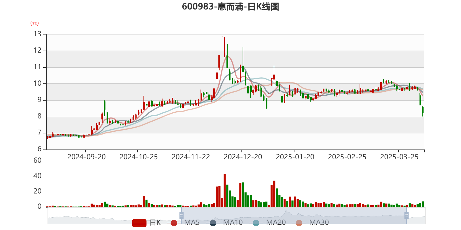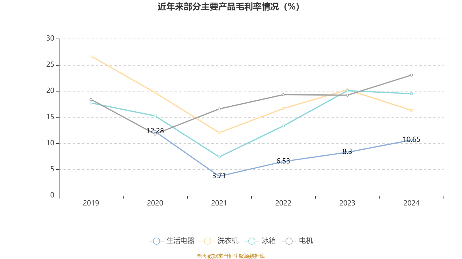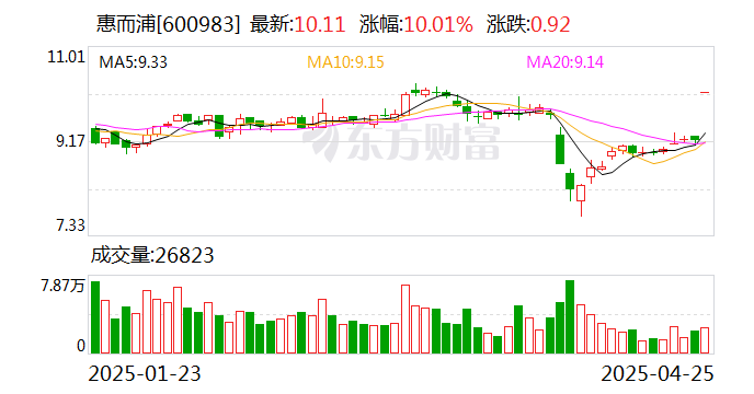 中证智能财讯惠而浦(600983)4月25日披露2024年年度报告。2024年,公司实现营业总收入36.49亿元,同比下降8.85%;归母净利润2.02亿元,同比增长148.72%;扣非净利润1.79亿元,同比增长74.80%;经营活动产生的现金流量净额为-5657.4万元,上年同期为6095.9万元;报告期内,惠而浦基本每股收益为0.26元,加权平均净资产收益率为7.75%。公司2024年度分配预案为:拟向全体股东每10股派现2.9元(含税)。