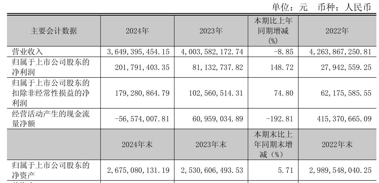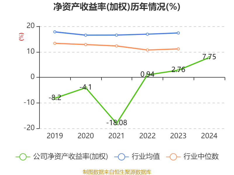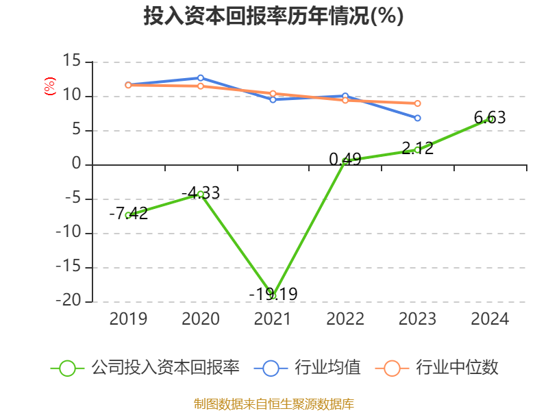 数据显示,2024年公司加权平均净资产收益率为7.75%,较上年同期上升4.99个百分点。公司2024年投入资本回报率为6.63%,较上年同期上升4.51个百分点。