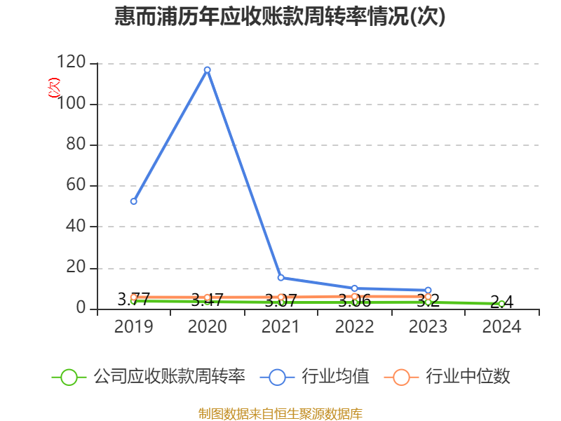 以4月24日收盘价计算,惠而浦目前市盈率(TTM)约为34.91倍,市净率(LF)约2.63倍,市销率(TTM)约1.93倍。