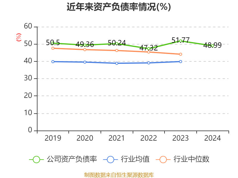 负债重大变化方面,截至2024年末,公司应付票据及应付账款较上年末减少3.64%,占公司总资产比重下降1.51个百分点;其他应付款(含利息和股利)较上年末减少20.64%,占公司总资产比重下降0.93个百分点;长期递延收益较上年末减少22.84%,占公司总资产比重下降0.31个百分点;应交税费较上年末增加52.14%,占公司总资产比重上升0.21个百分点。