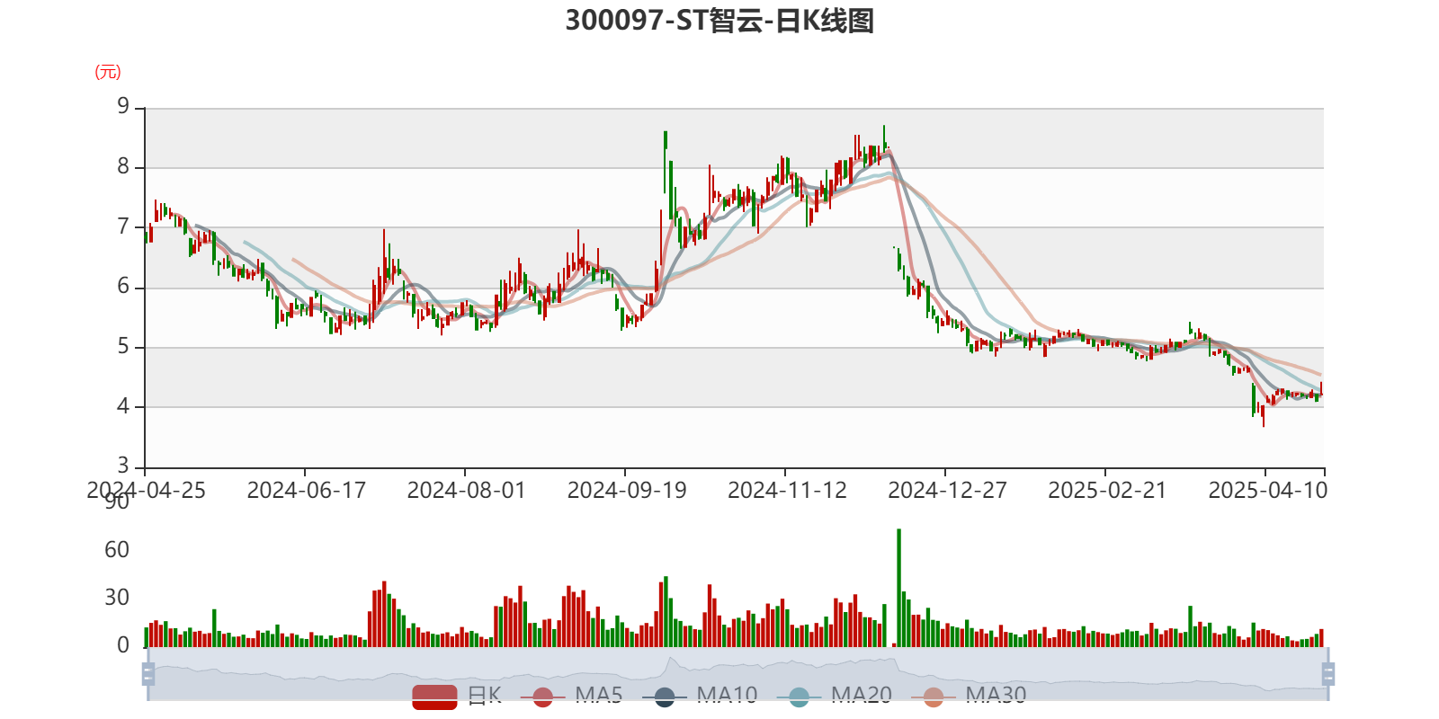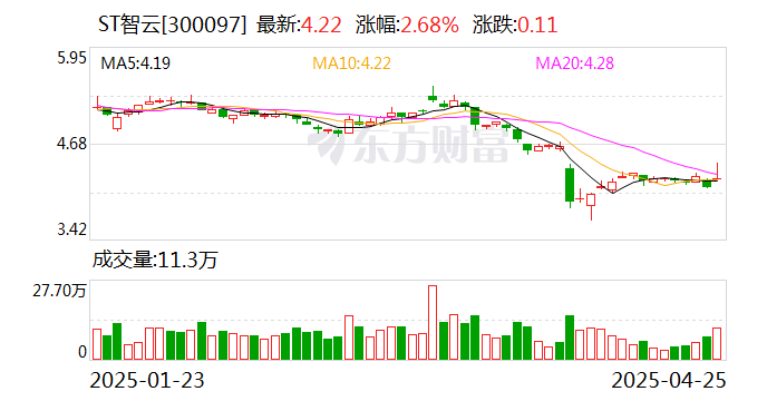 值得注意的是,中登公司数据显示,截至2025年4月18日,ST智云10.03%股份处于质押状态。年报显示,第一大股东师利全质押2450万股公司股份,占其全部持股的99.16%;第五大股东胡争光质押443万股公司股份,占其全部持股的100%。