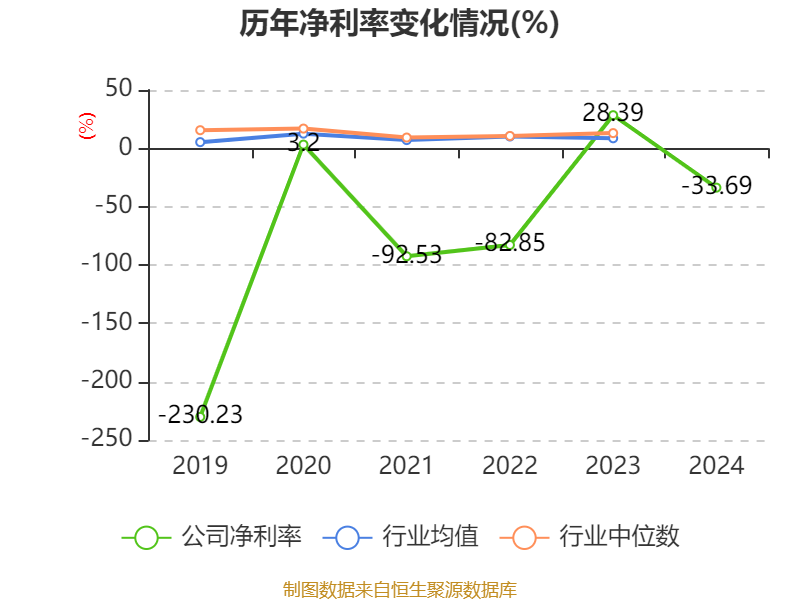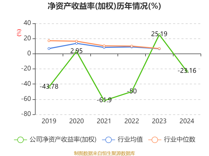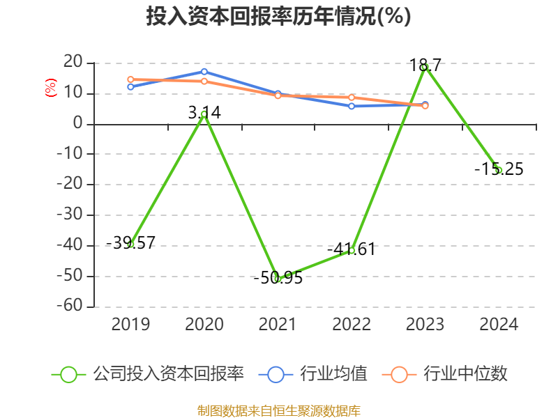 数据显示,2024年公司加权平均净资产收益率为-23.16%,较上年同期下降48.35个百分点。公司2024年投入资本回报率为-15.25%,较上年同期下降33.95个百分点。