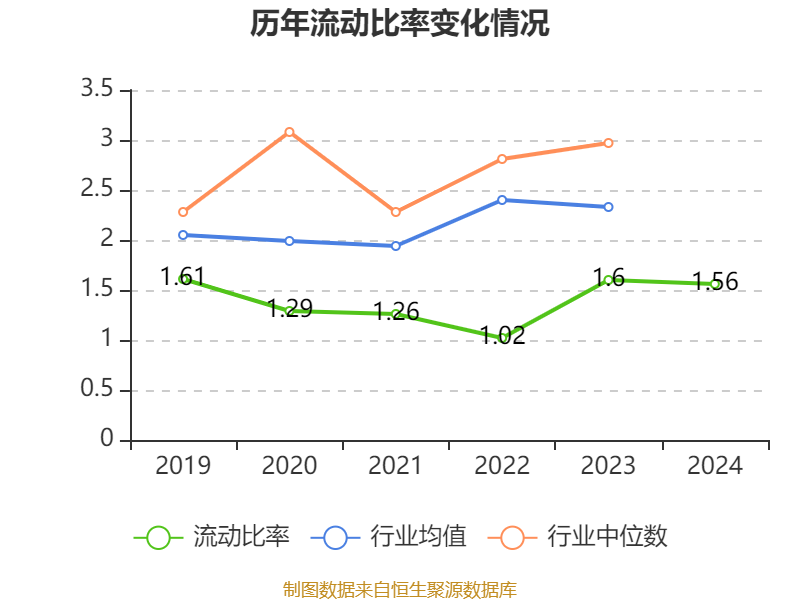 2024年,公司流动比率为1.56,速动比率为1.03。