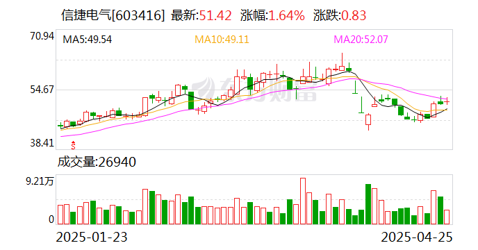 4月25日,信捷电气(603416)公布2025年一季报,公司营业收入为3.88亿元,同比上升14.3%;归母净利润为4601万元,同比上升3.5%;扣非归母净利润为4049万元,同比上升8.2%;经营现金流净额为-7166万元,同比下降15.9%;EPS(全面摊薄)为0.3273元。