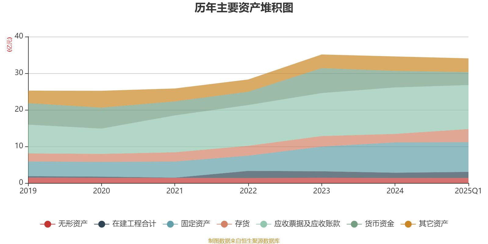 资产重大变化方面,截至2025年一季度末,公司存货较上年末增加54.96%,占公司总资产比重上升3.83个百分点;货币资金较上年末减少21.75%,占公司总资产比重下降2.69个百分点;应收票据及应收账款较上年末减少5.37%,占公司总资产比重下降1.44个百分点;在建工程合计较上年末增加16.76%,占公司总资产比重上升0.76个百分点。