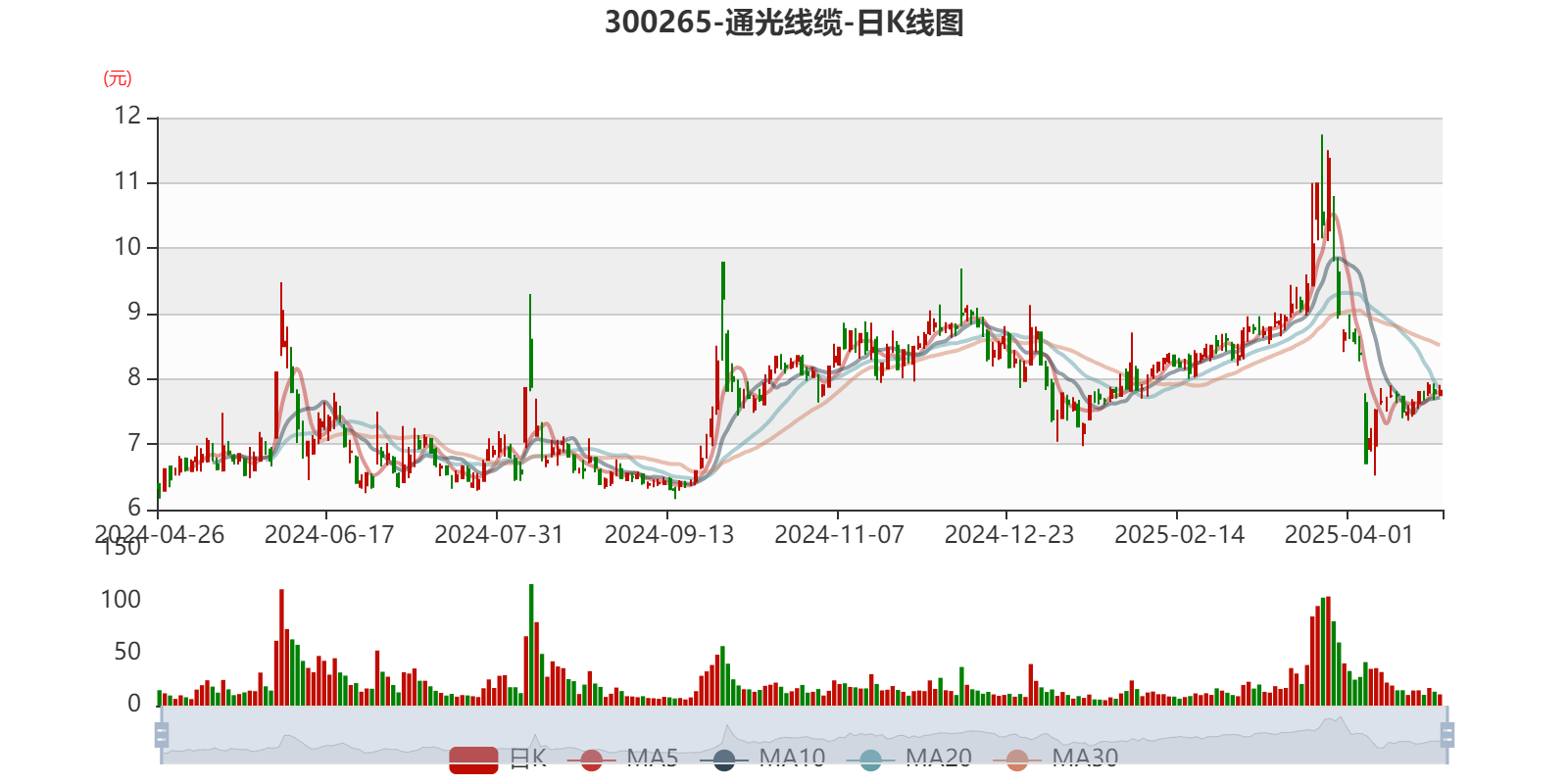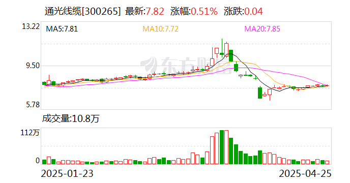 以4月25日收盘价计算,通光线缆目前市盈率(TTM)约为86.56倍,市净率(LF)约1.6倍,市销率(TTM)约1.41倍。