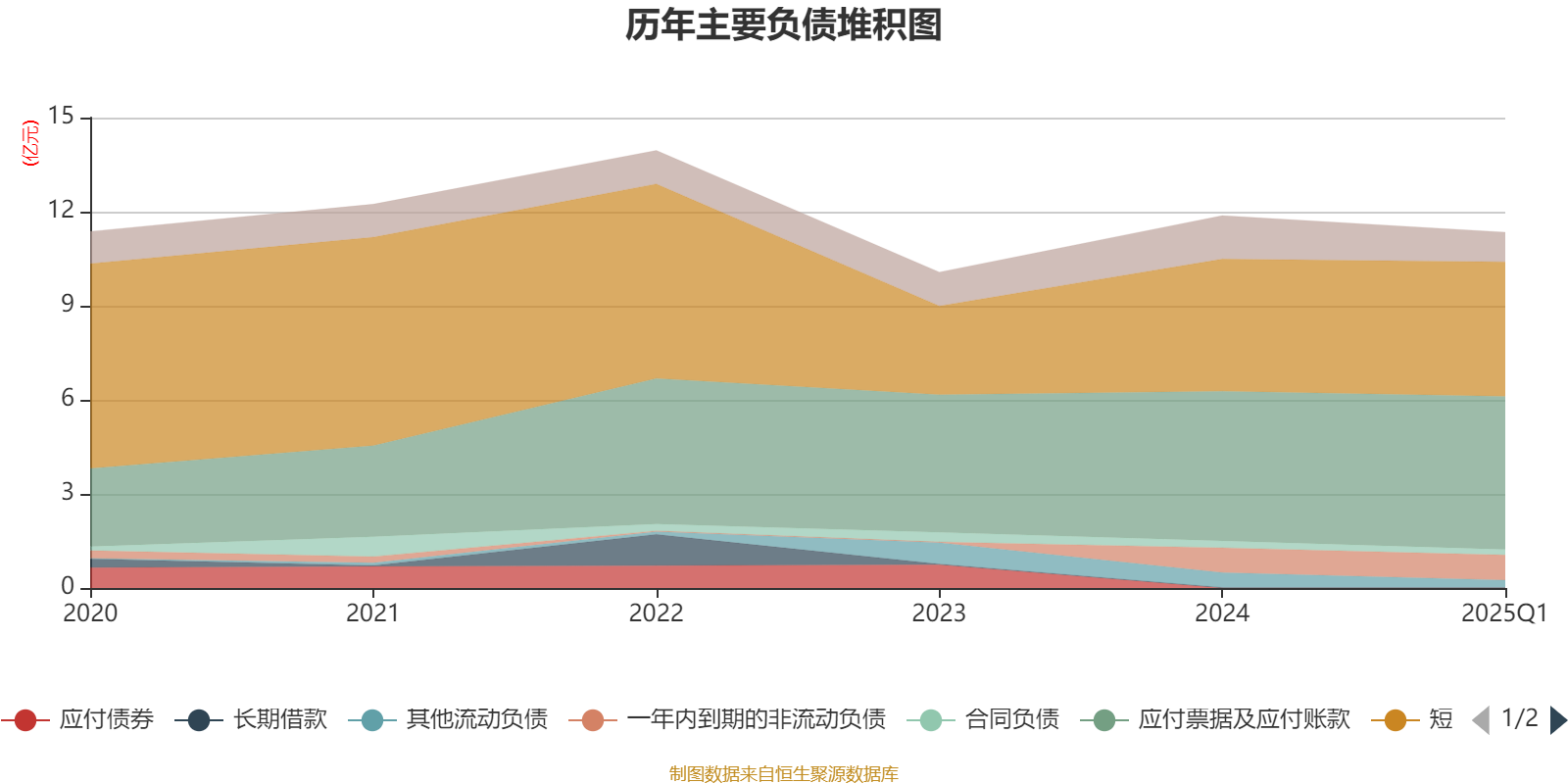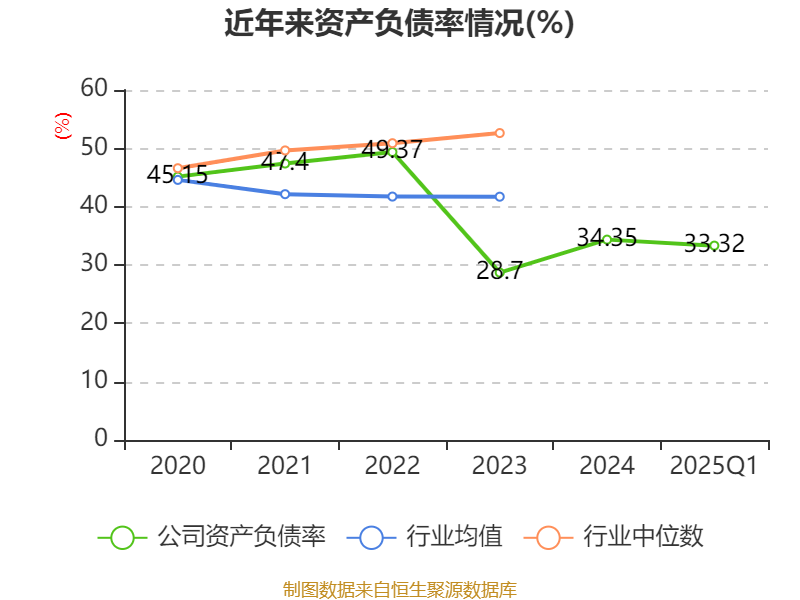 负债重大变化方面,截至2025年一季度末,公司其他流动负债较上年末减少50.05%,占公司总资产比重下降0.68个百分点;应付票据及应付账款较上年末增加2.31%,占公司总资产比重上升0.54个百分点;应付职工薪酬较上年末减少36.72%,占公司总资产比重下降0.48个百分点;其他应付款(含利息和股利)较上年末减少38.1%,占公司总资产比重下降0.44个百分点。