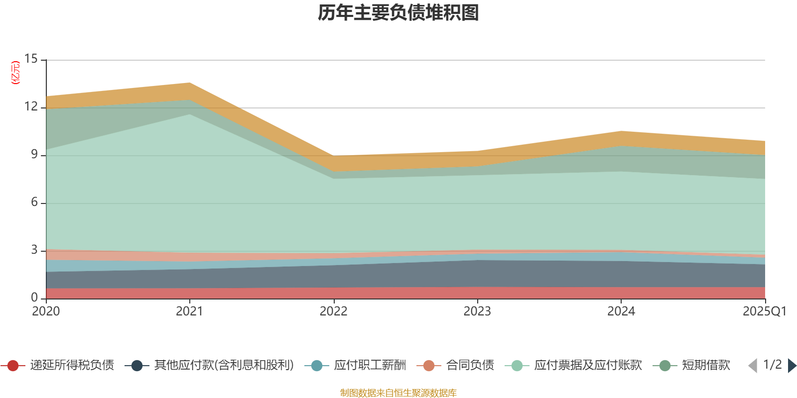 负债重大变化方面,截至2025年一季度末,公司其他应付款(含利息和股利)较上年末减少12.6%,占公司总资产比重下降0.48个百分点;应交税费较上年末减少64.15%,占公司总资产比重下降0.36个百分点;应付职工薪酬较上年末减少24.1%,占公司总资产比重下降0.35个百分点;其他流动负债较上年末增加30.51%,占公司总资产比重上升0.21个百分点。