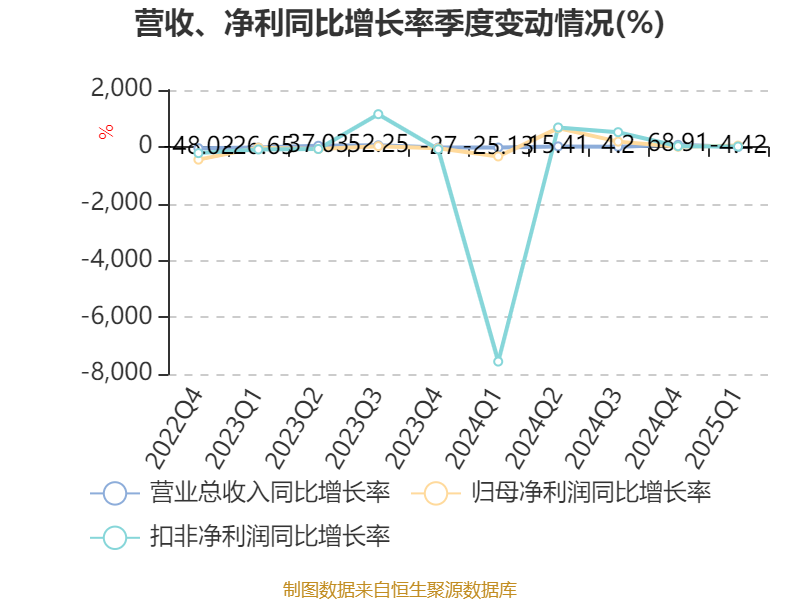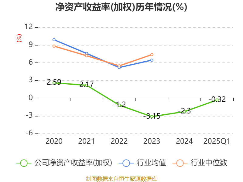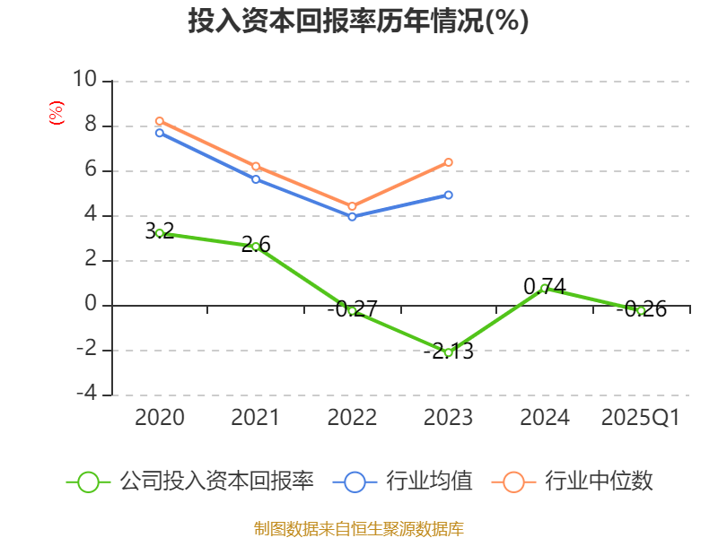 盈利能力方面, 2025年一季度公司加权平均净资产收益率为-0.32%,同比上升0.23个百分点。公司2025年第一季度投入资本回报率为-0.26%,较上年同期上升0.25个百分点。