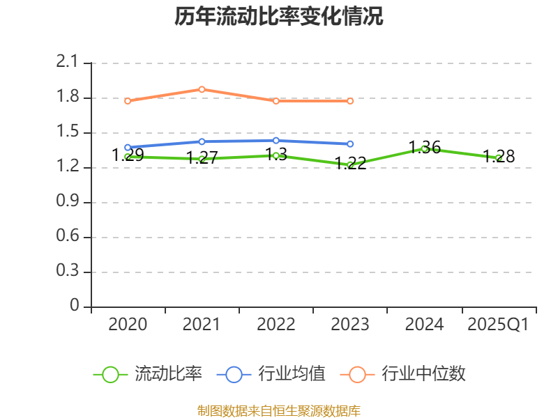 2025年第一季度,公司流动比率为1.28,速动比率为1.01。