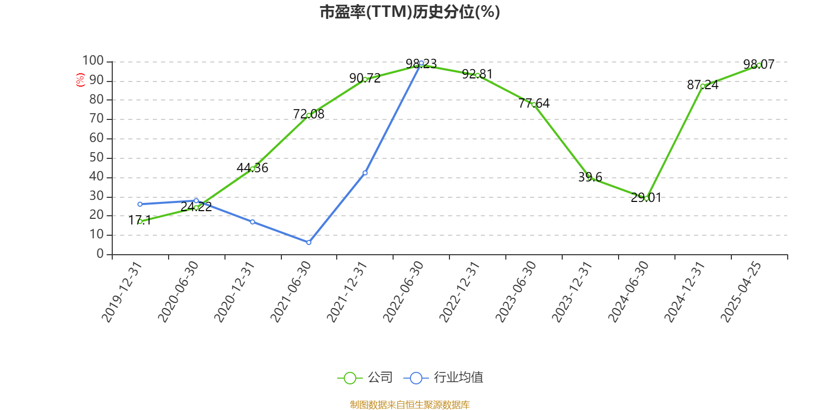 市盈率、市净率为负时,不显示当期分位数,会导致折线图中断。
