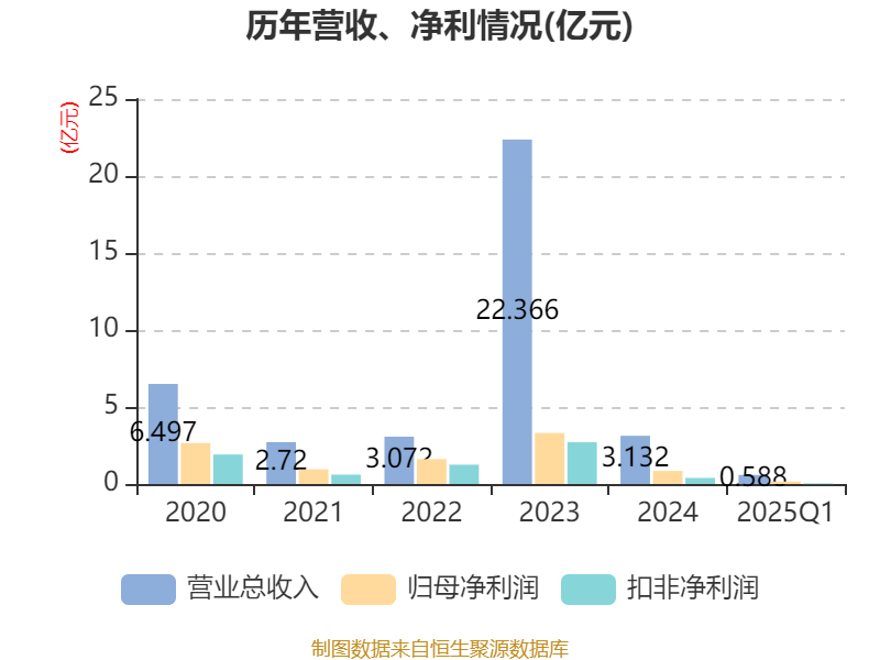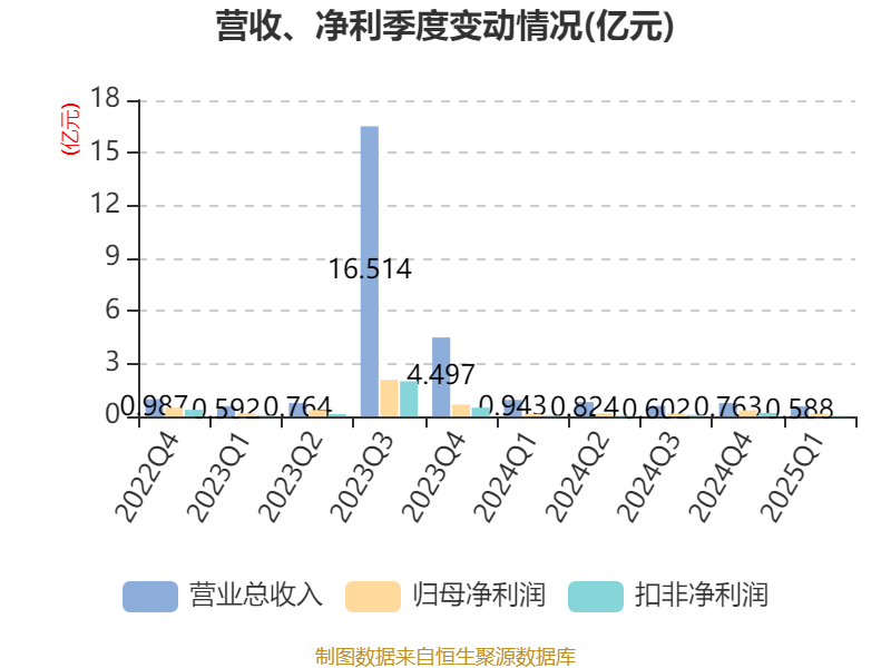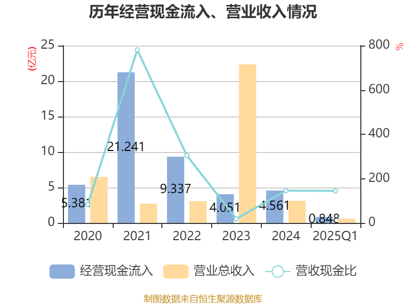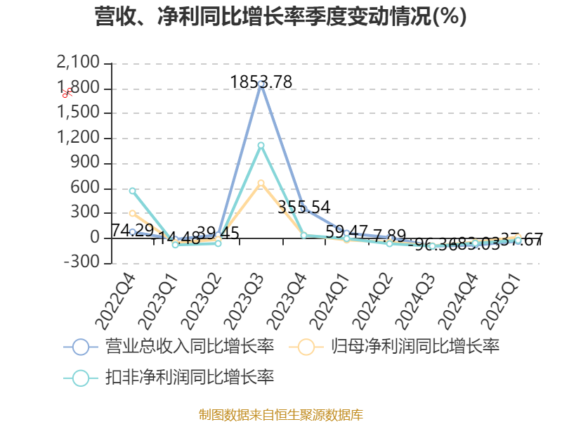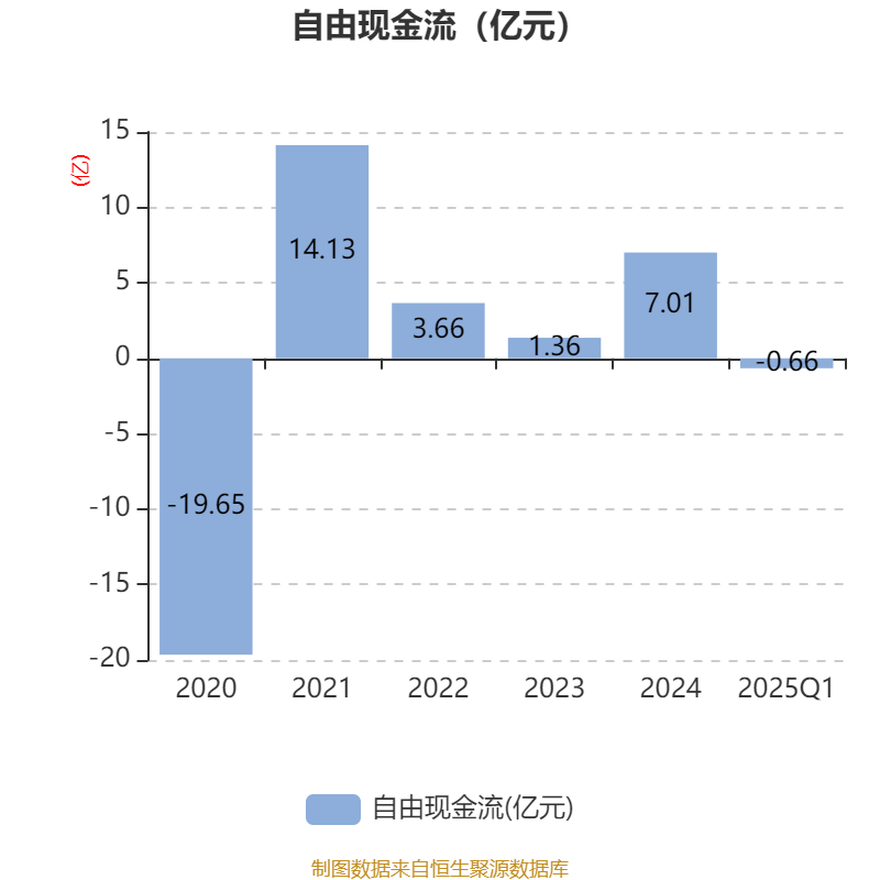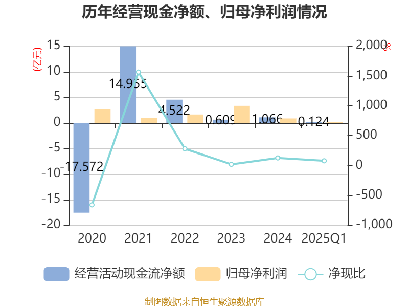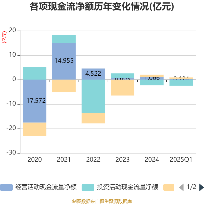 截至2025年一季度末,公司经营活动现金流净额为1238.49万元,同比增加1.06亿元;筹资活动现金流净额7486.99万元,同比减少2.38亿元;投资活动现金流净额-2.49亿元,上年同期为-23.34万元。