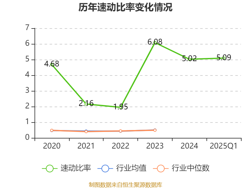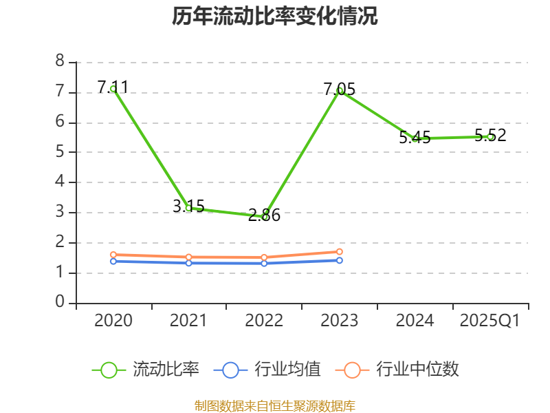 2025年第一季度,公司流动比率为5.52,速动比率为5.09。