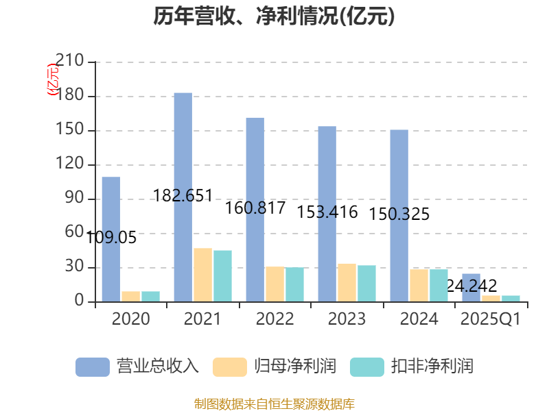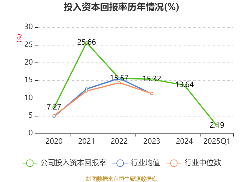 盈利能力方面, 2025年一季度公司加权平均净资产收益率为2.72%,同比下降1.77个百分点。公司2025年第一季度投入资本回报率为2.19%,较上年同期下降1.41个百分点。
