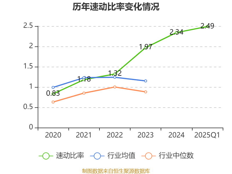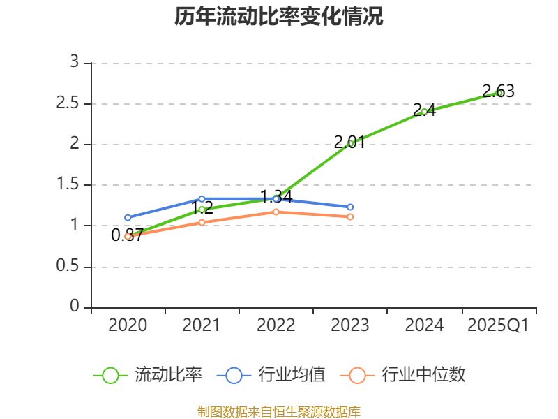 2025年第一季度,公司流动比率为2.63,速动比率为2.49。