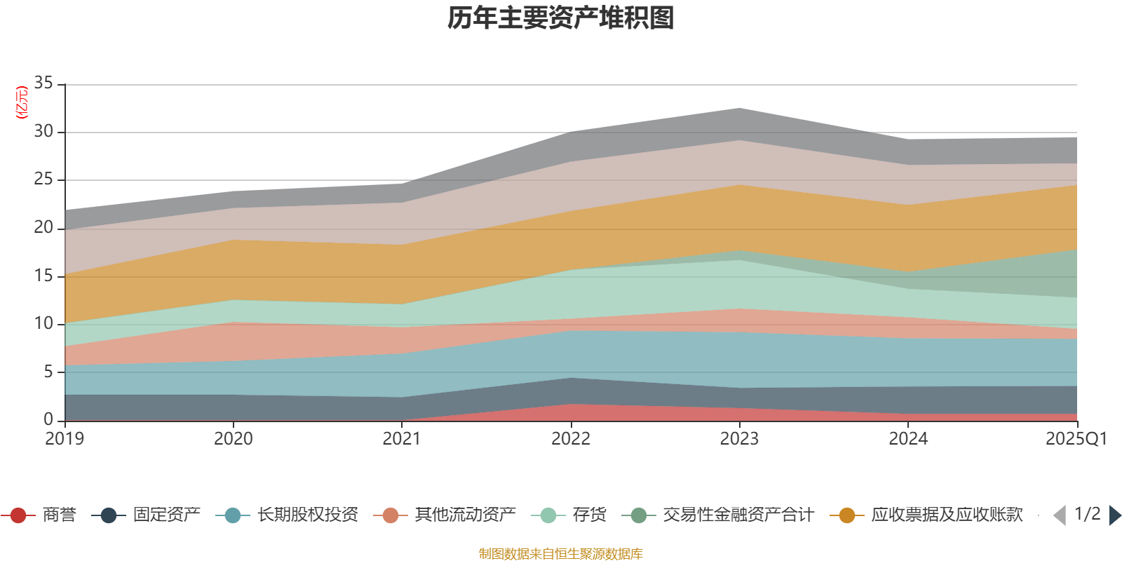 资产重大变化方面,截至2025年一季度末,公司交易性金融资产合计较上年末增加180.15%,占公司总资产比重上升10.87个百分点;货币资金较上年末减少45.52%,占公司总资产比重下降6.51个百分点;其他流动资产较上年末减少52.36%,占公司总资产比重下降3.95个百分点;应收票据及应收账款较上年末减少3.58%,占公司总资产比重下降1.01个百分点。