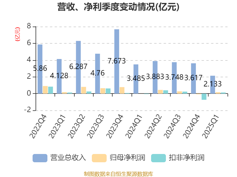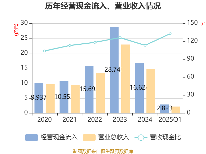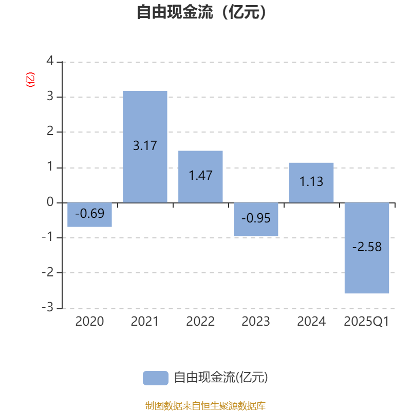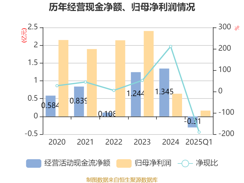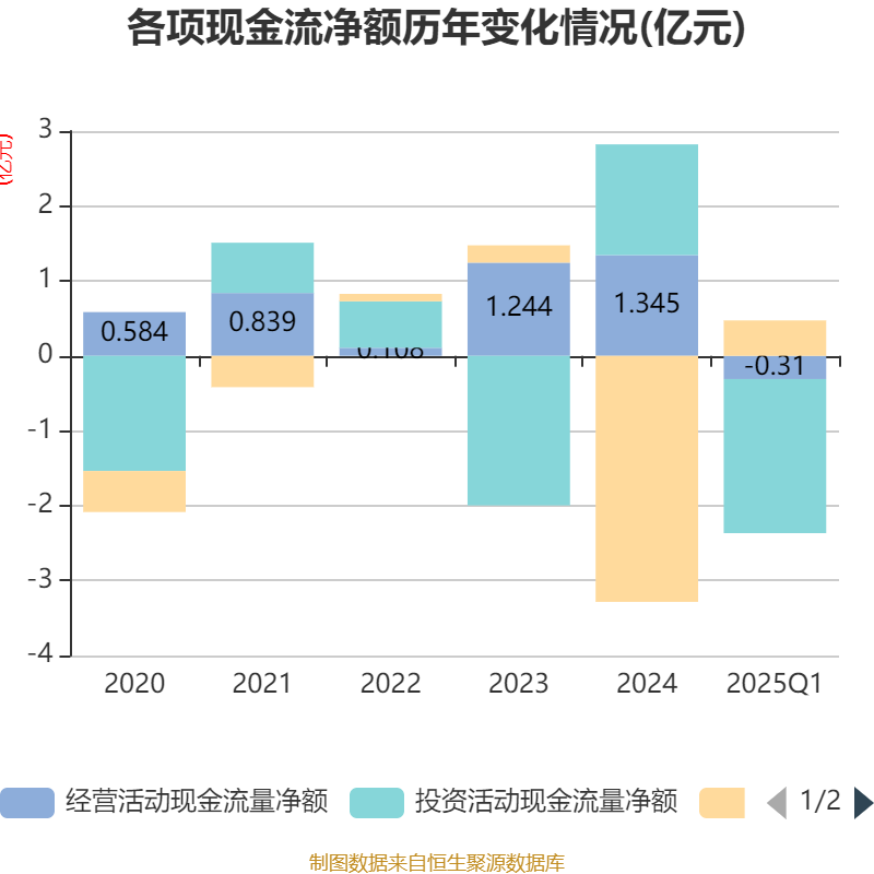 截至2025年一季度末,公司经营活动现金流净额为-3102.4万元,同比增加3840.72万元;筹资活动现金流净额4728.44万元,同比增加6141.9万元;投资活动现金流净额-2.06亿元,上年同期为-1.96亿元。