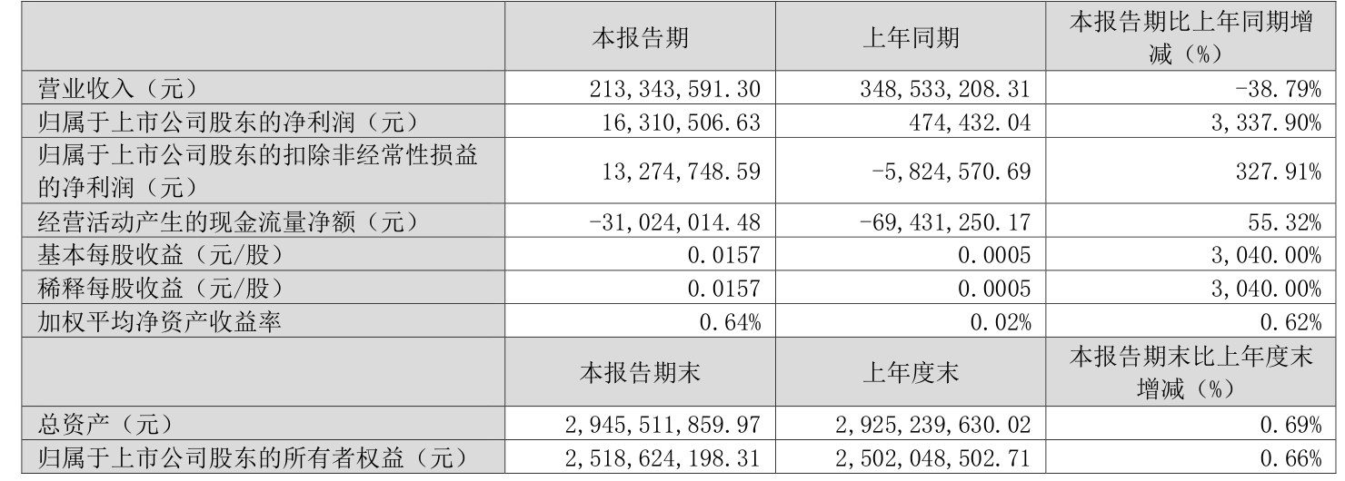 中证智能财讯三川智慧(300066)4月26日披露2025年第一季度报告。公司实现营业总收入2.13亿元,同比下降38.79%;归母净利润1631.05万元,同比增长3337.90%;扣非净利润1327.47万元,同比扭亏;经营活动产生的现金流量净额为-3102.4万元,上年同期为-6943.13万元;报告期内,三川智慧基本每股收益为0.0157元,加权平均净资产收益率为0.64%。