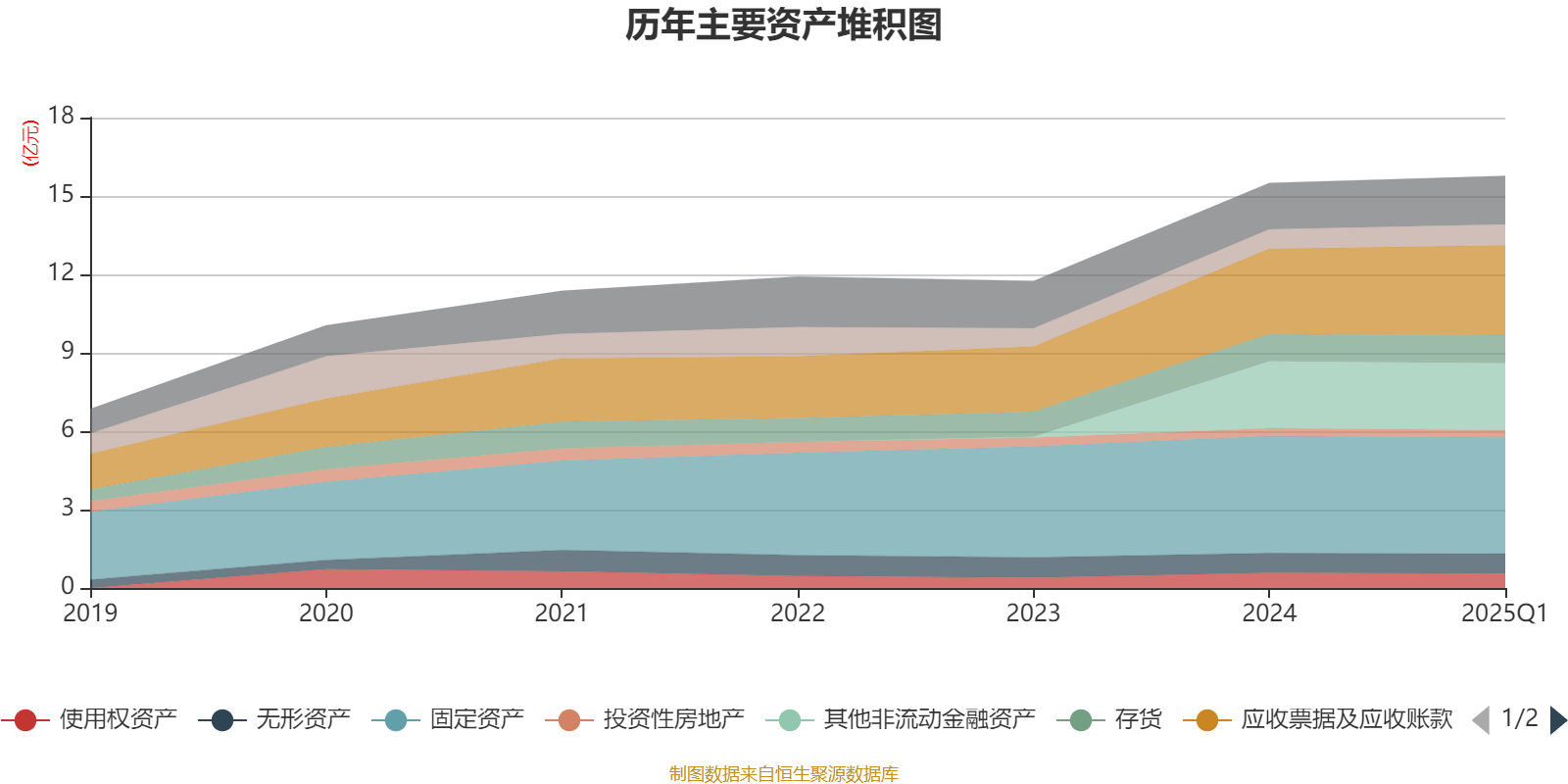 资产重大变化方面,截至2025年一季度末,公司其他非流动资产较上年末增加442.5%,占公司总资产比重上升1.5个百分点;应收票据及应收账款较上年末增加5.59%,占公司总资产比重上升0.8个百分点;固定资产较上年末减少0.52%,占公司总资产比重下降0.64个百分点;其他流动资产较上年末减少31.77%,占公司总资产比重下降0.44个百分点。