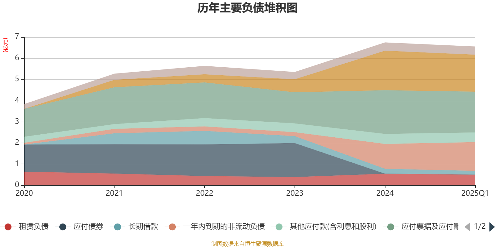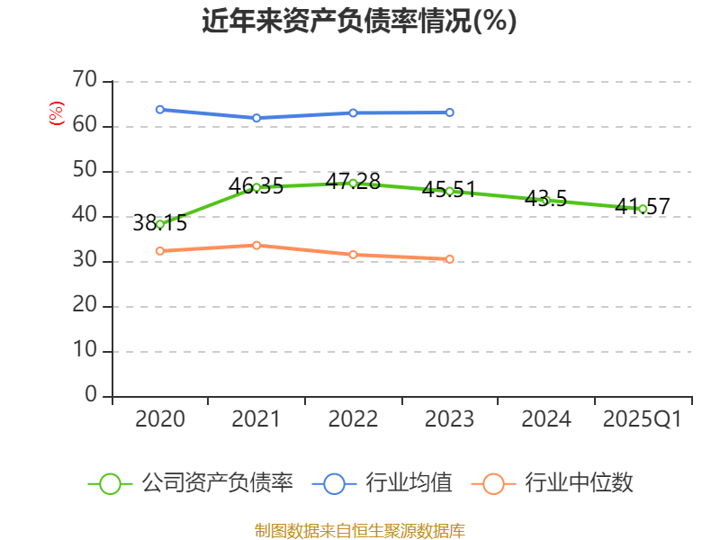 负债重大变化方面,截至2025年一季度末,公司应付票据及应付账款较上年末减少6.75%,占公司总资产比重下降1.11个百分点;一年内到期的非流动负债较上年末增加15.63%,占公司总资产比重上升1.03个百分点;短期借款较上年末减少6.45%,占公司总资产比重下降0.97个百分点;租赁负债较上年末减少8.61%,占公司总资产比重下降0.36个百分点。