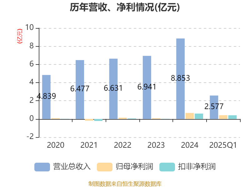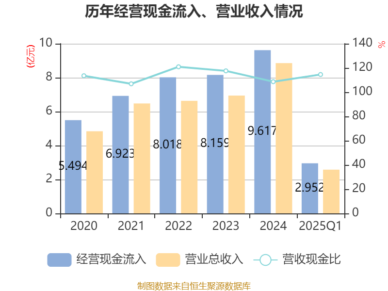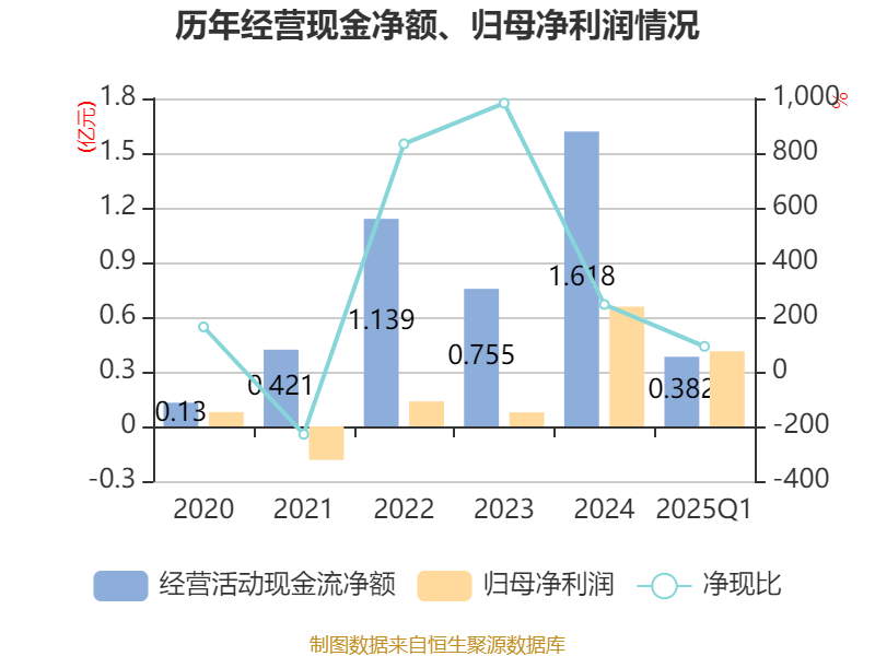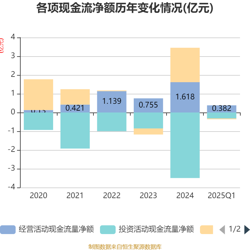 截至2025年一季度末,公司经营活动现金流净额为3821.07万元,同比增长17.43%;筹资活动现金流净额-437.4万元,同比减少5696.26万元;投资活动现金流净额-3159.88万元,上年同期为-6061.55万元。