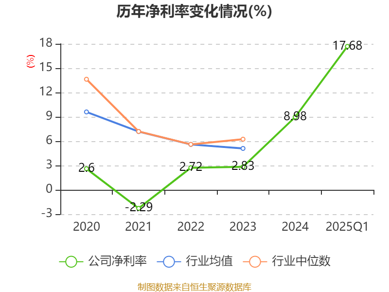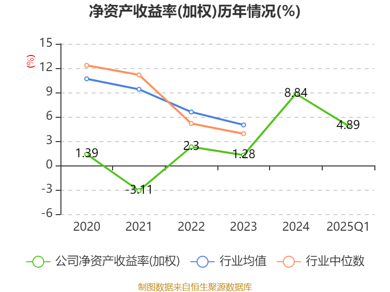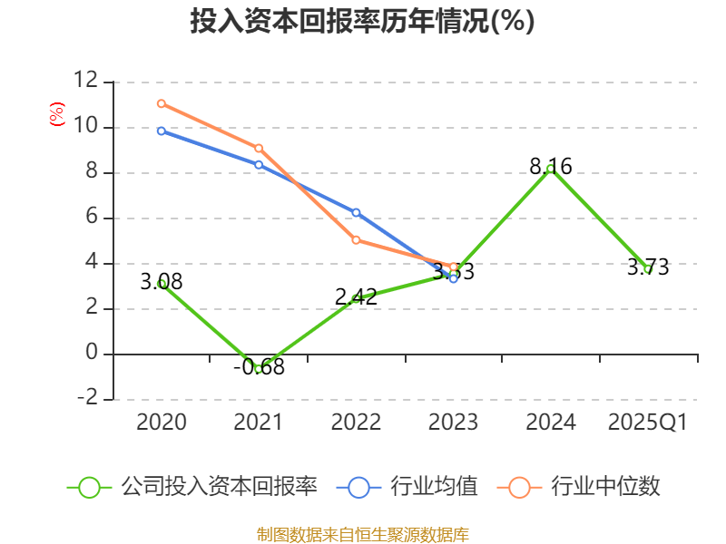 盈利能力方面, 2025年一季度公司加权平均净资产收益率为4.89%,同比上升4.14个百分点。公司2025年第一季度投入资本回报率为3.73%,较上年同期上升2.38个百分点。