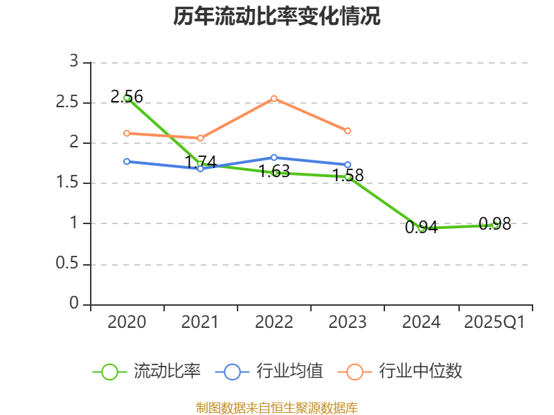 2025年第一季度,公司流动比率为0.98,速动比率为0.8。