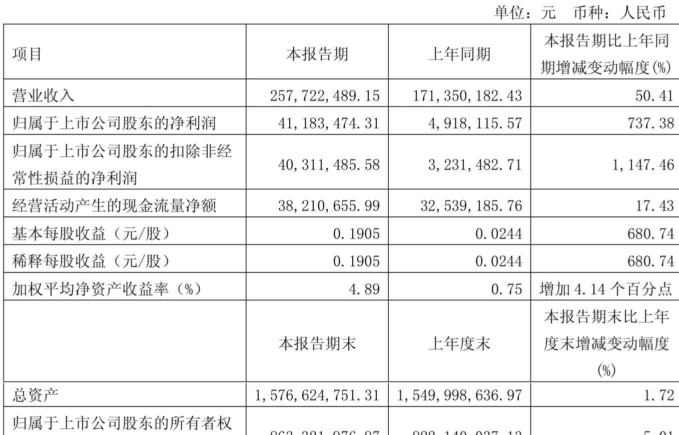 中证智能财讯翔港科技(603499)4月26日披露2025年第一季度报告。公司实现营业总收入2.58亿元,同比增长50.41%;归母净利润4118.35万元,同比增长737.38%;扣非净利润4031.15万元,同比增长1147.46%;经营活动产生的现金流量净额为3821.07万元,同比增长17.43%;报告期内,翔港科技基本每股收益为0.1905元,加权平均净资产收益率为4.89%。