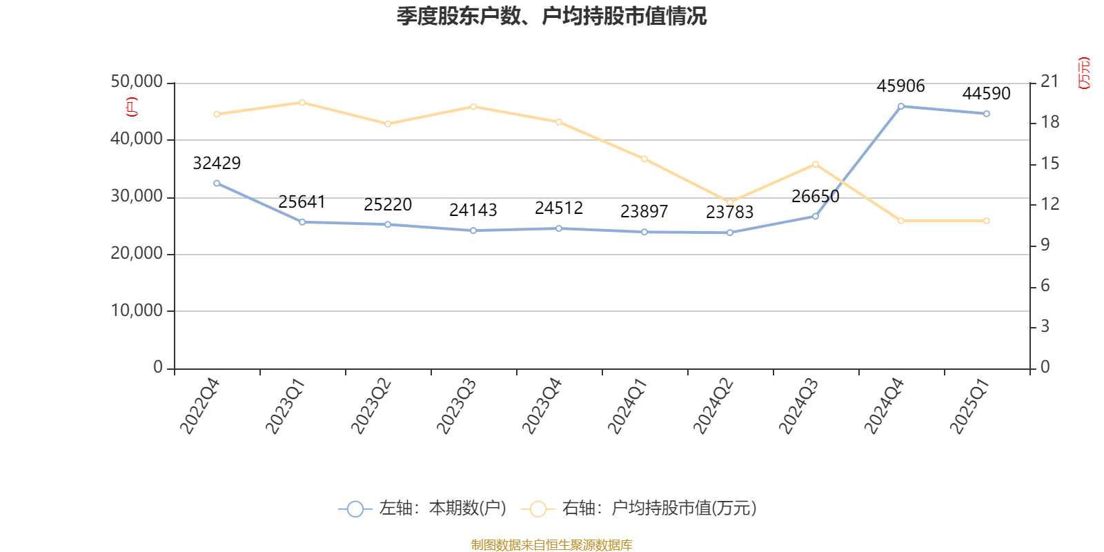 一季报显示,2025年一季度末的公司十大流通股东中,新进股东为徐小君、郭金山、王毅,取代了上年末的吴吉明、唐富泉、张广成。在具体持股比例上,徐发彬持股有所上升,中银金融资产投资有限公司持股有所下降。