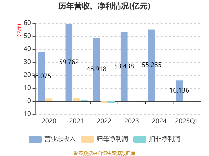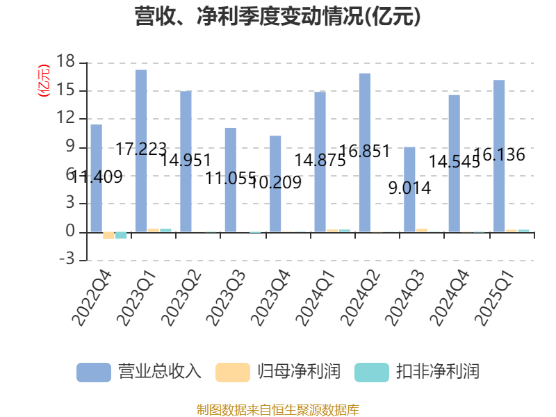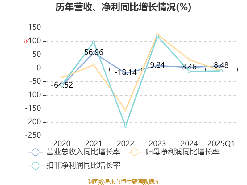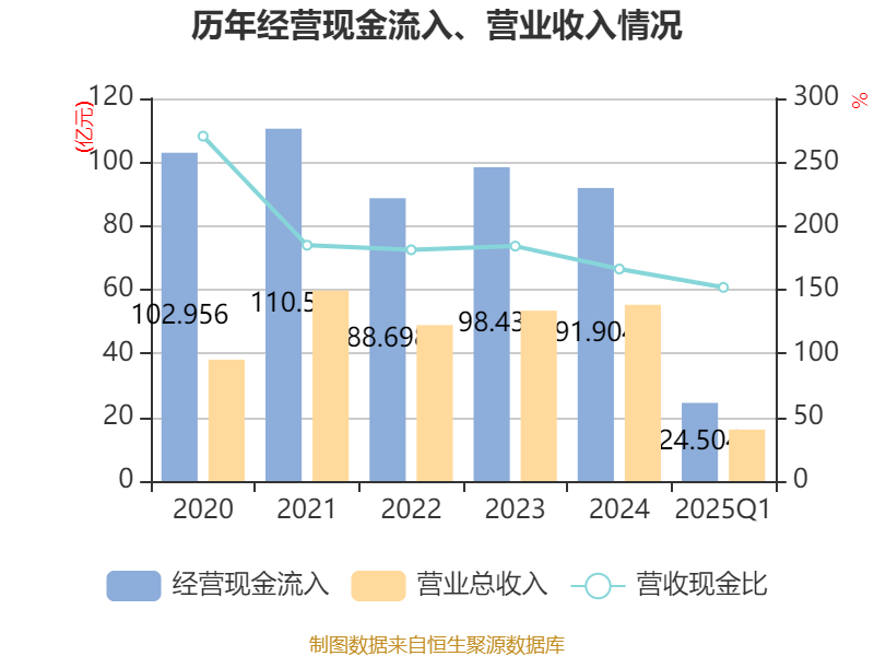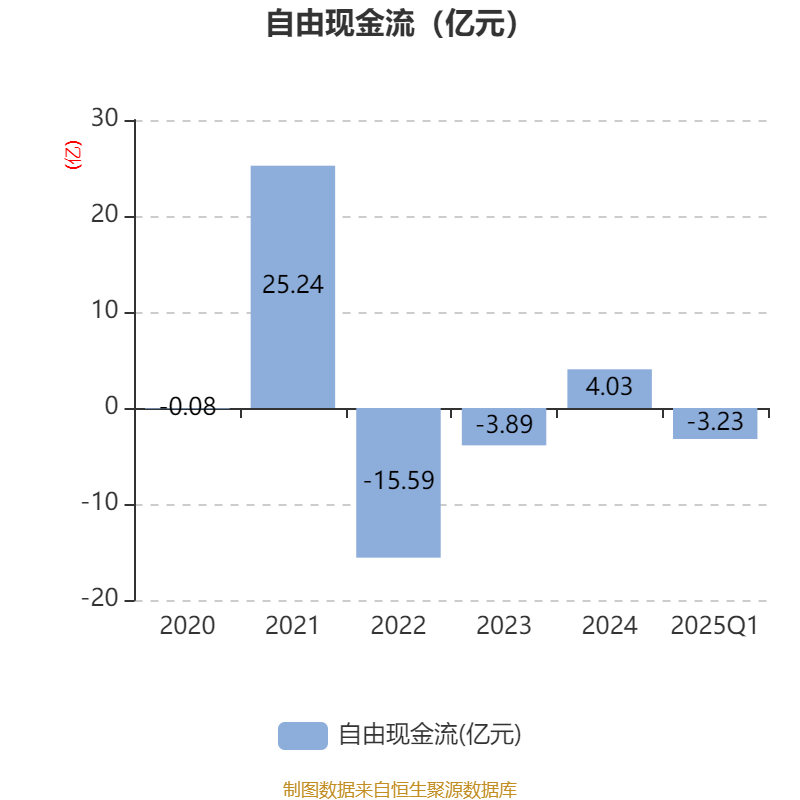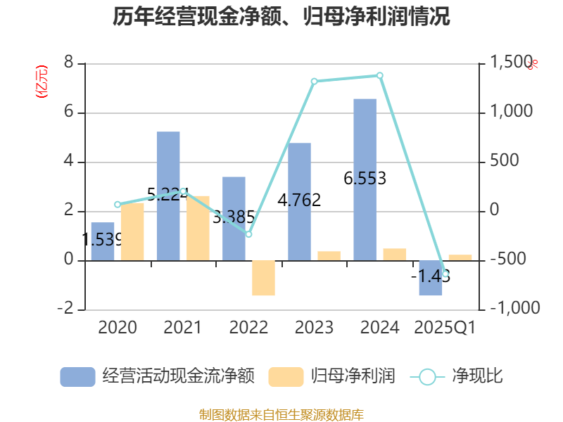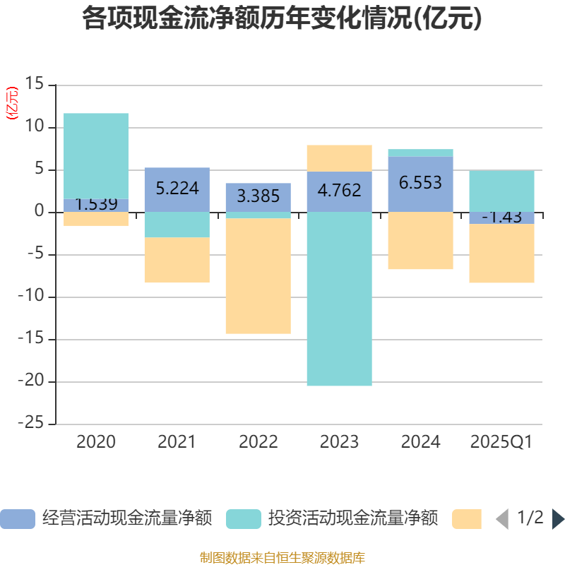 截至2025年一季度末,公司经营活动现金流净额为-1.43亿元,同比减少1.75亿元;筹资活动现金流净额-6.93亿元,同比减少5.28亿元;投资活动现金流净额4.85亿元,上年同期为-648.55万元。