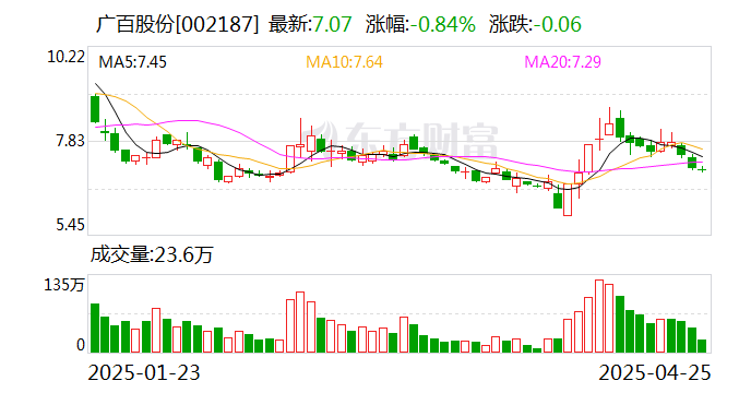 以4月25日收盘价计算,广百股份目前市盈率(TTM)约为109.94倍,市净率(LF)约1.21倍,市销率(TTM)约0.88倍。
