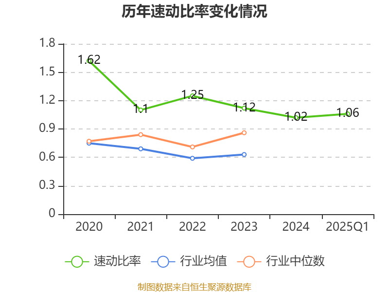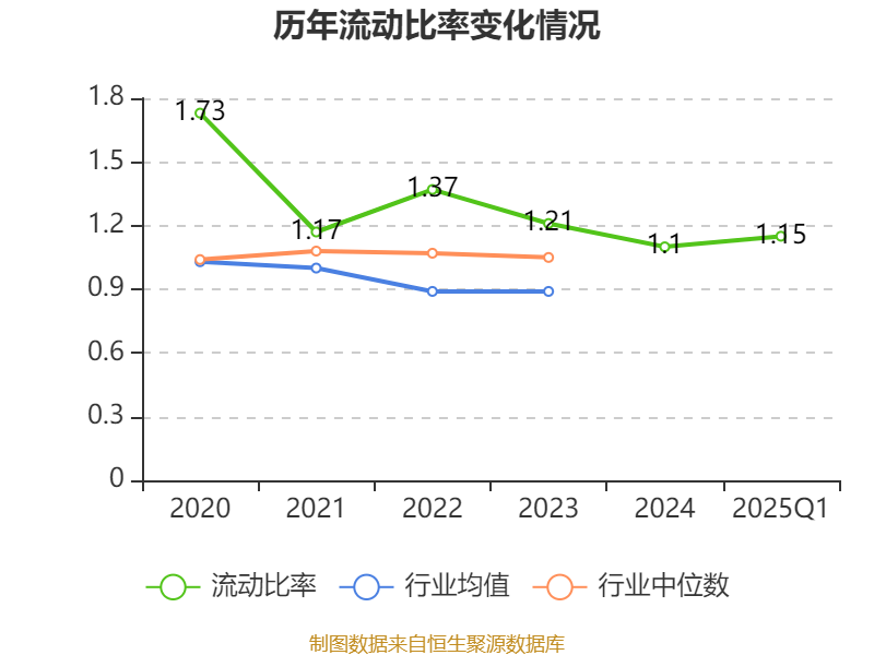 2025年第一季度,公司流动比率为1.15,速动比率为1.06。