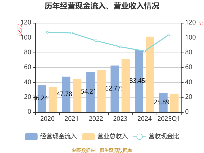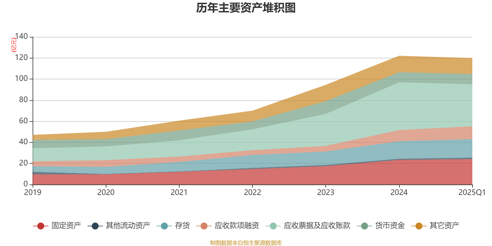 资产重大变化方面,截至2025年一季度末,公司应收票据及应收账款较上年末减少11.91%,占公司总资产比重下降3.82个百分点;交易性金融资产合计较上年末减少78.15%,占公司总资产比重下降1.75个百分点;应收款项融资较上年末增加14.36%,占公司总资产比重上升1.43个百分点;存货较上年末增加5.4%,占公司总资产比重上升1个百分点。
