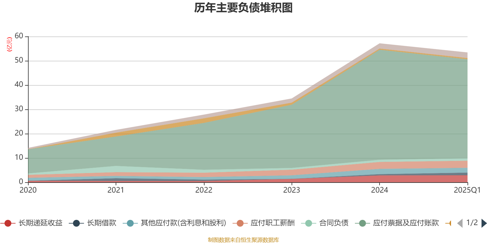 负债重大变化方面,截至2025年一季度末,公司应付票据及应付账款较上年末减少10.06%,占公司总资产比重下降3.13个百分点;其他流动负债较上年末增加1743.12%,占公司总资产比重上升1.26个百分点;预计负债较上年末减少93.96%,占公司总资产比重下降1.17个百分点;长期借款较上年末增加120.47%,占公司总资产比重上升0.5个百分点。