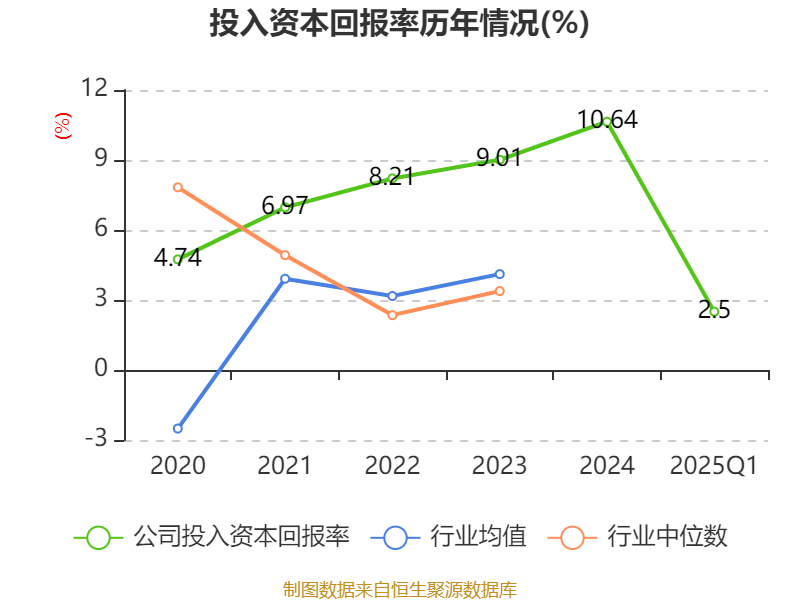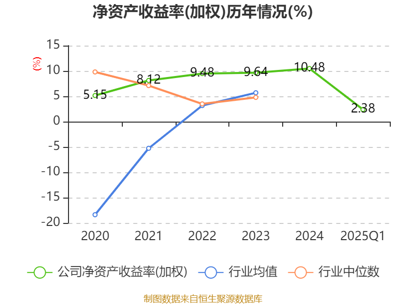 盈利能力方面, 2025年一季度公司加权平均净资产收益率为2.38%,同比上升0.03个百分点。公司2025年第一季度投入资本回报率为2.5%,较上年同期上升0.1个百分点。