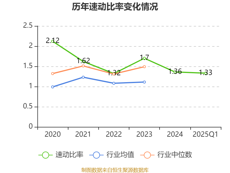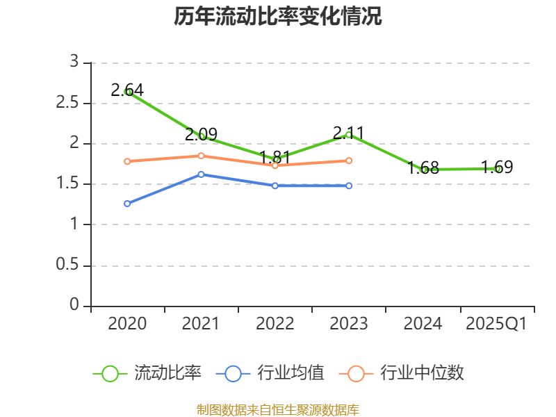 2025年第一季度,公司流动比率为1.69,速动比率为1.33。