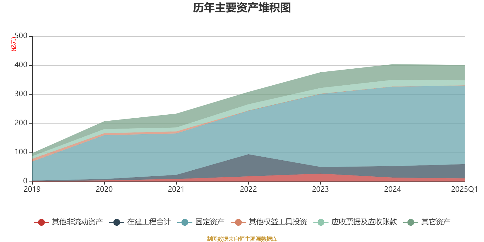 资产重大变化方面,截至2025年一季度末,公司在建工程合计较上年末增加25.21%,占公司总资产比重上升2.51个百分点;应收票据及应收账款较上年末减少24.18%,占公司总资产比重下降1.37个百分点;存货较上年末减少33.67%,占公司总资产比重下降0.79个百分点;其他非流动资产较上年末减少20.8%,占公司总资产比重下降0.69个百分点。