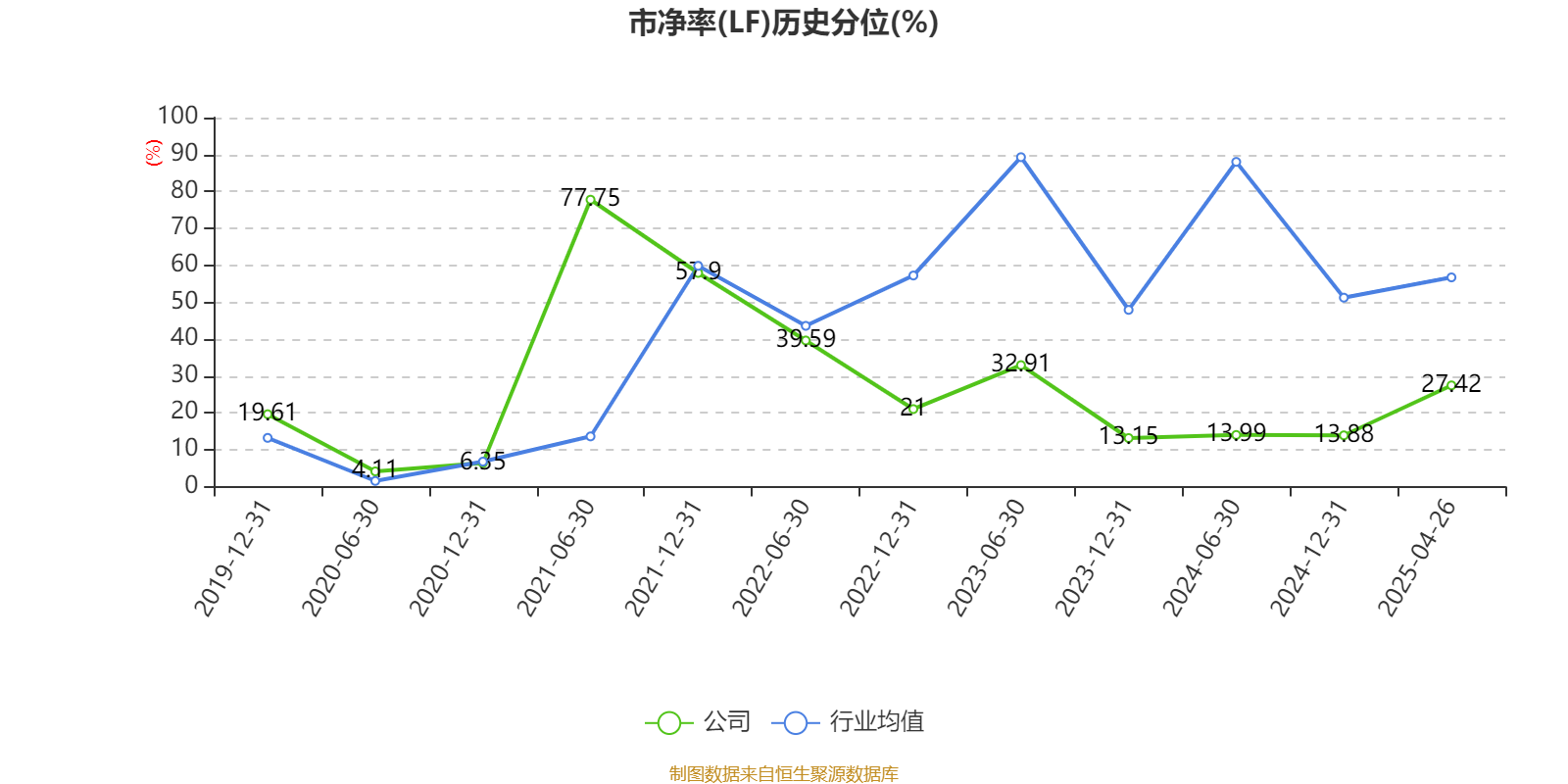 市盈率、市净率为负时,不显示当期分位数,会导致折线图中断。